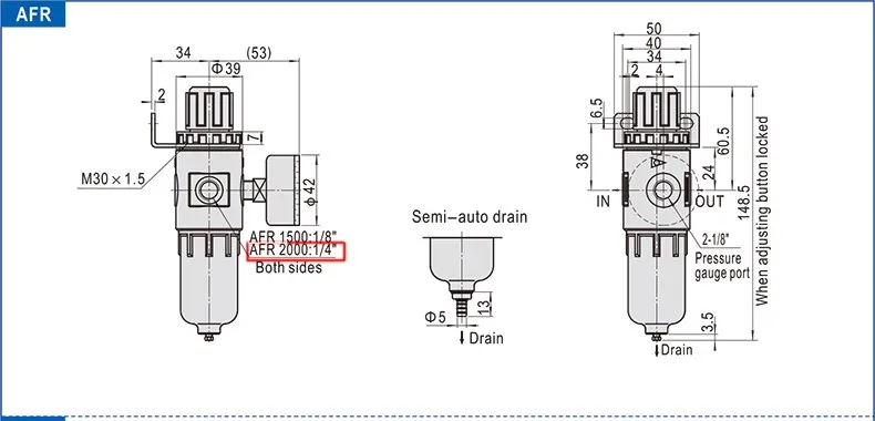 1 шт. AFR-2000 Пневматический фильтр блок обработки воздуха регулятор давления компрессора редукционный клапан разделения масла и воды датчик AFR2000