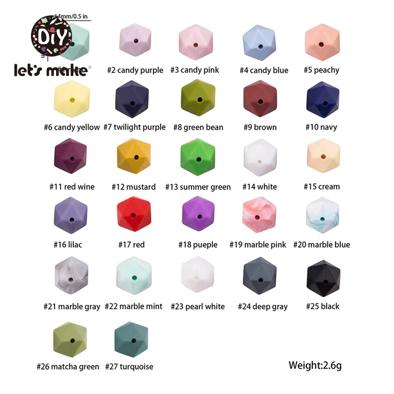 Бусины шестигранные из пищевого силикона, 14 мм, 50 шт.