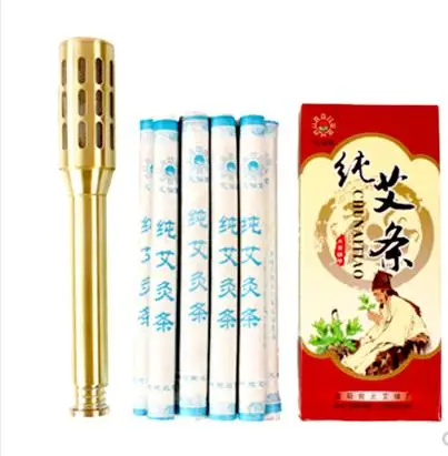 Латунный Moxa рулон набор акупунктурная терапия медный массажный Меридиан Moxa валик для прижигания палка микро-дым мугворт горелка