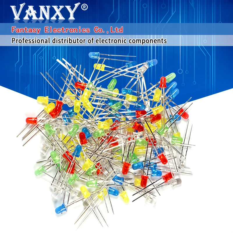 Набор светодиодных диодов, 500 шт., 3 мм, разные цвета, красный, зеленый, желтый, синий, белый