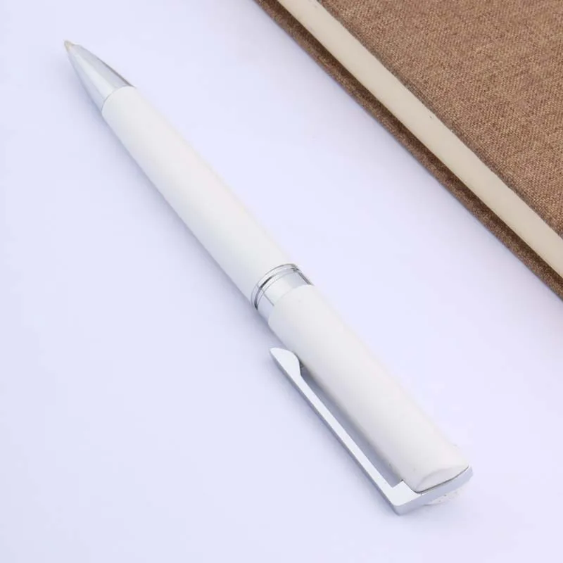 Шариковая ручка, белая с полосой серебристого цвета, металлическая, специальная подпись