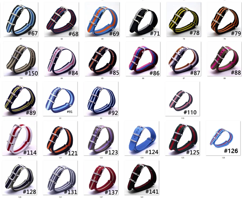 Материал: нейлоновый ремешок, Пряжка из нержавеющей стали Ширина ремешка: 20 мм Длина ремешка: 255 мм Тип застежки: разноцветный Примечание: Если вы хотите купить другие цвета, вы можете дать мне Примечание и сказать мне цвет, который вам нужен.