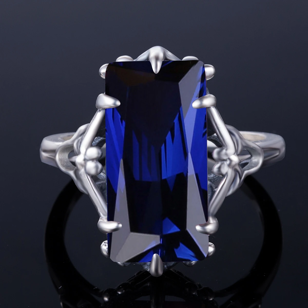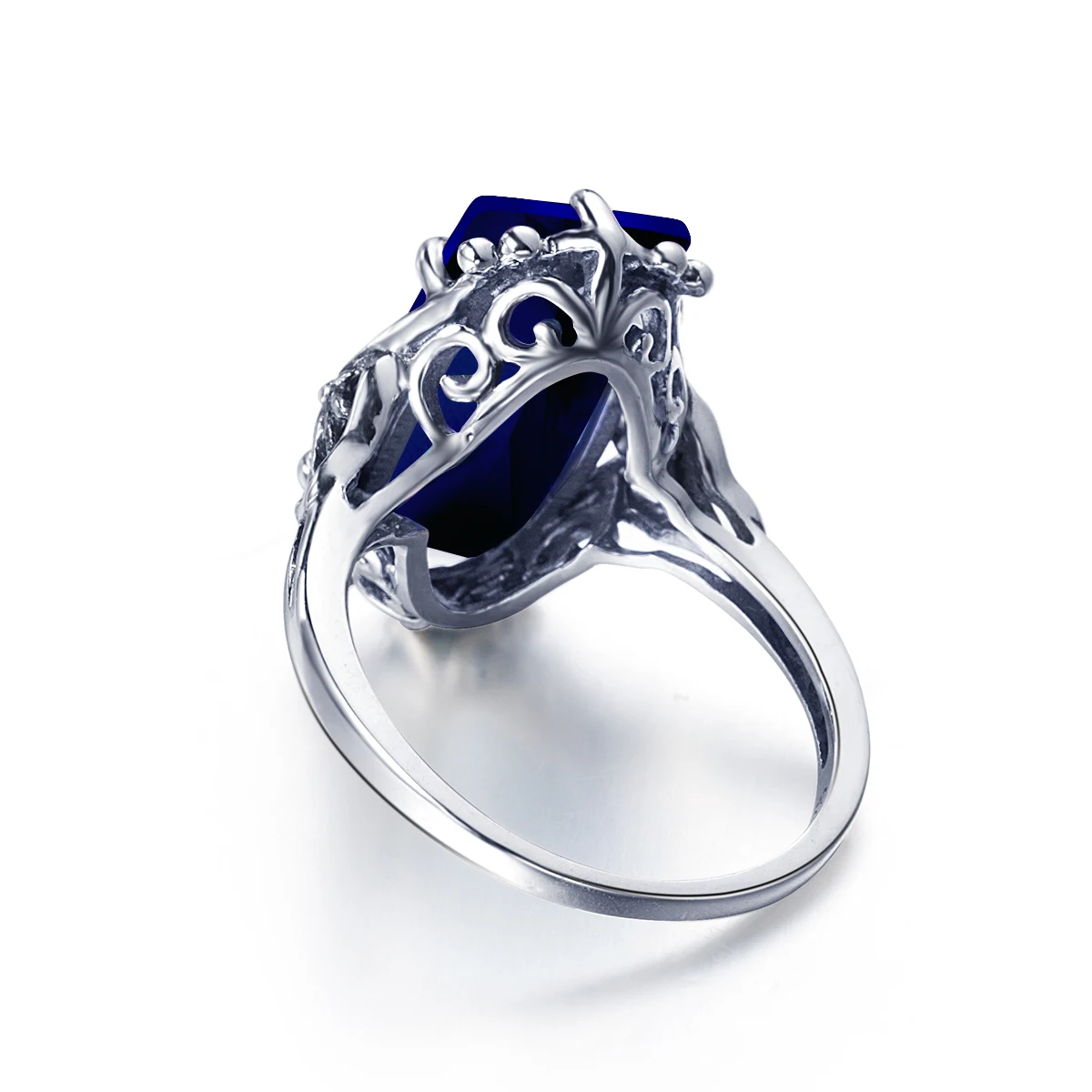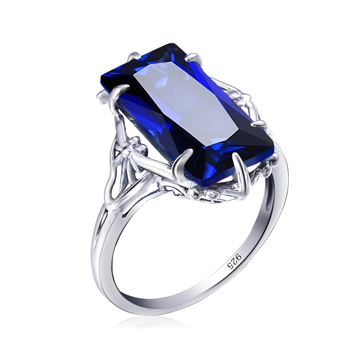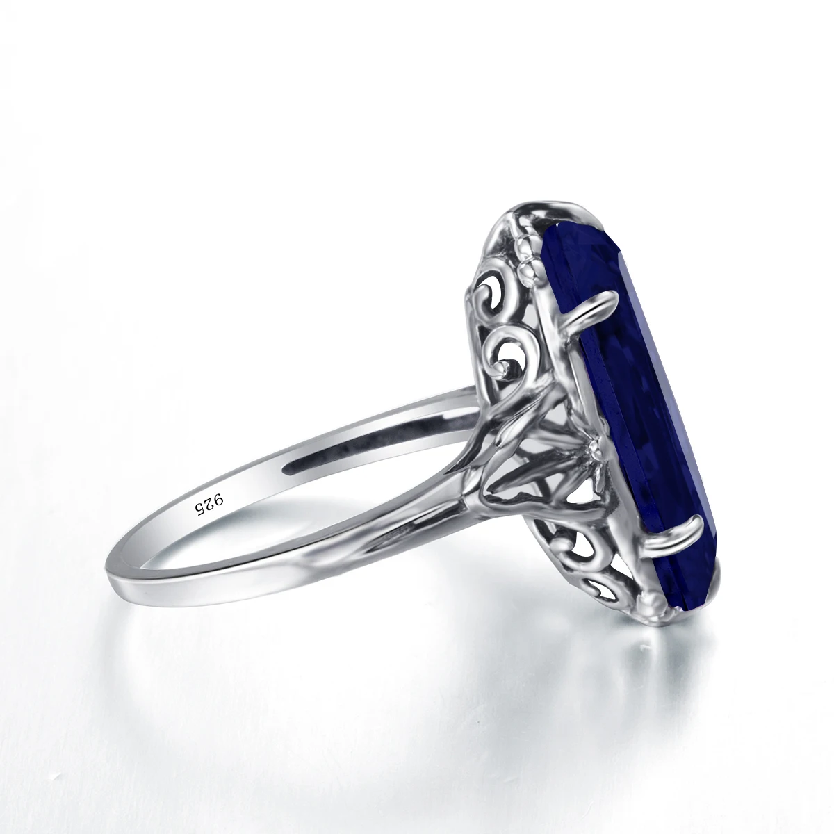 Кольцо ручной работы из настоящего серебра 100% пробы женское, классическое большое лабораторное с сапфировым камнем, Ювелирное Украшение, лучший подарок, 925
