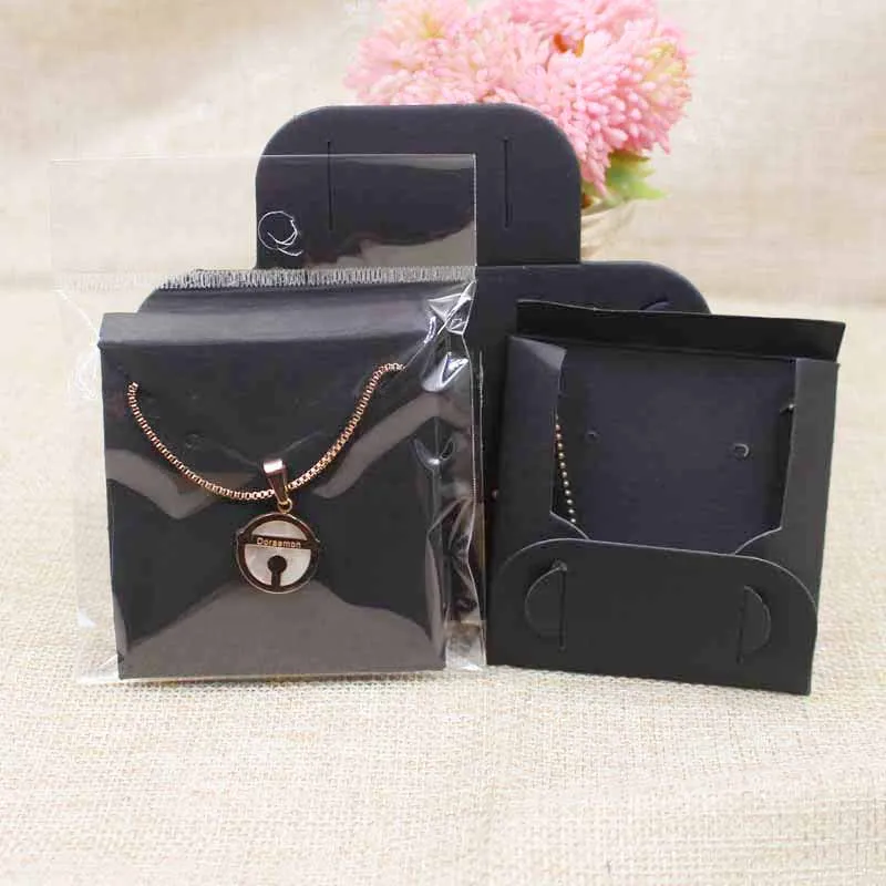 Новинка 2017, чернаякоричневая упаковочная карточка для ожерелья, витрина для ювелирных изделий с расширенной сложенной упаковочной карточкой 100 шт + 100opp пакет