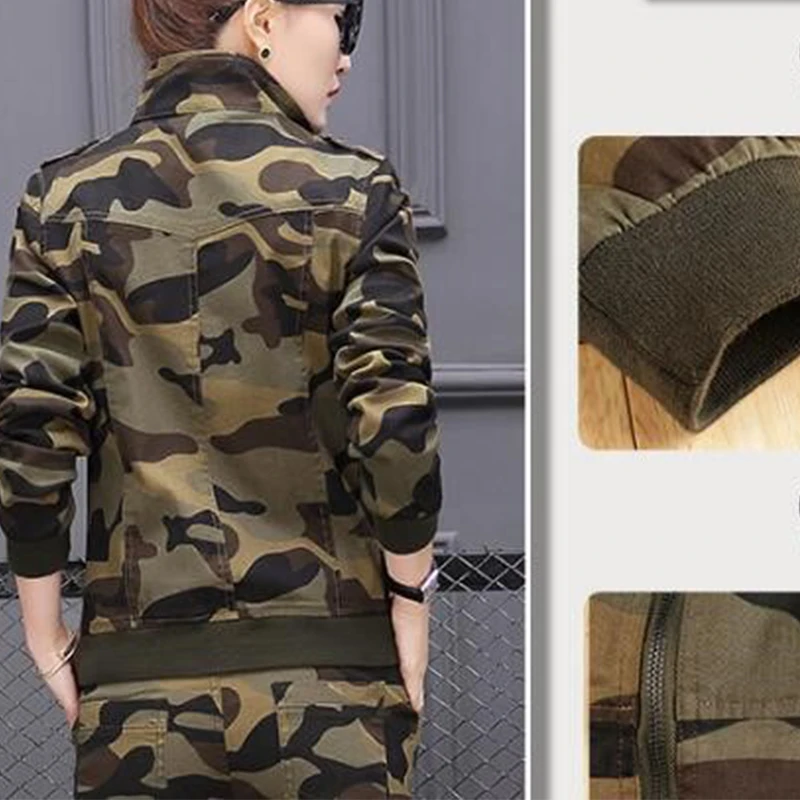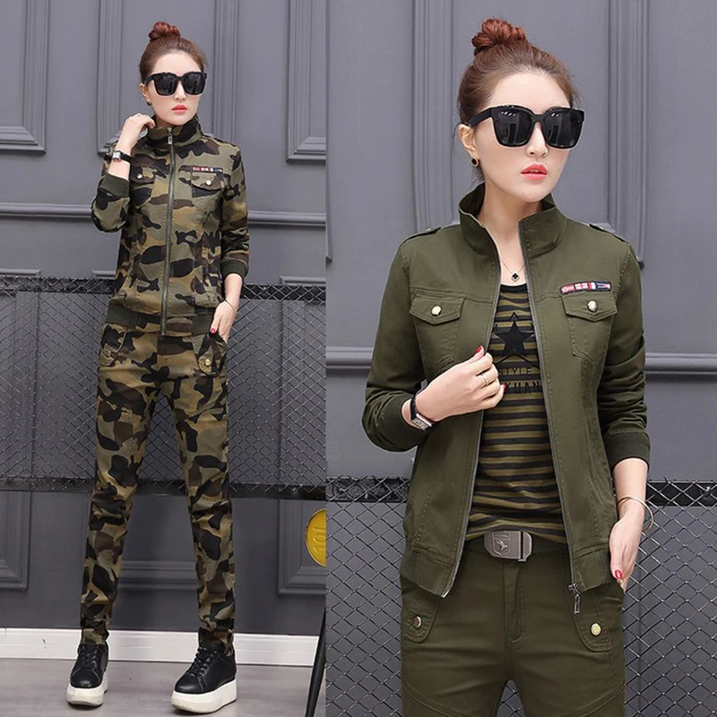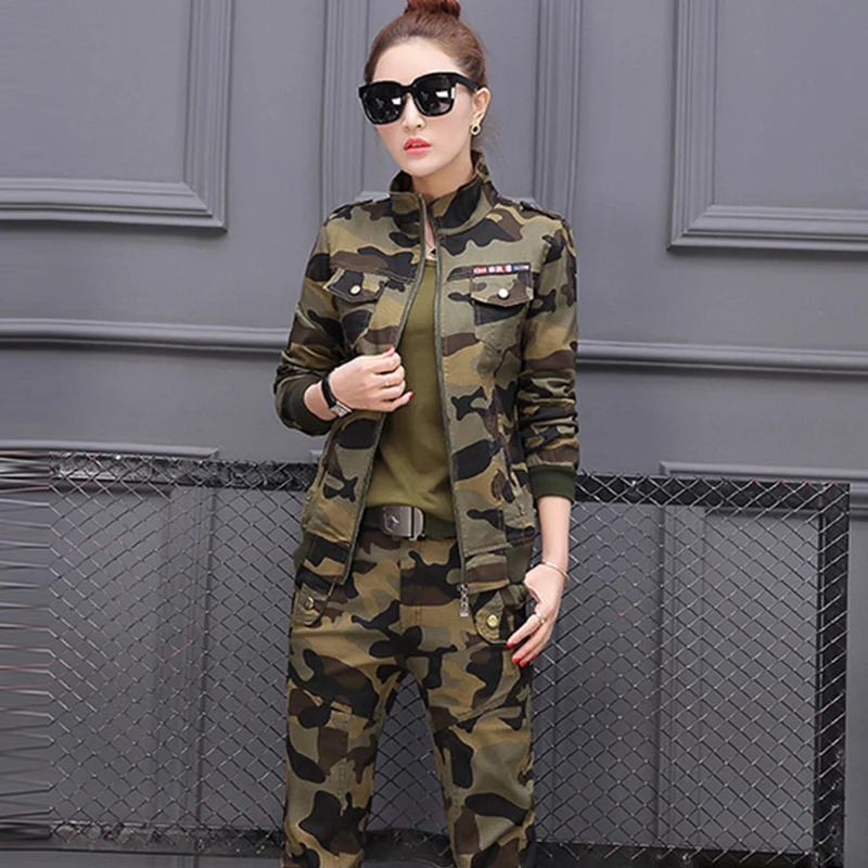Размера плюс 5XL Женский Костюм Весенний хлопковый военный Камуфляжный комплект из двух предметов Топ и штаны 2XL 3XL 4XL женский костюм