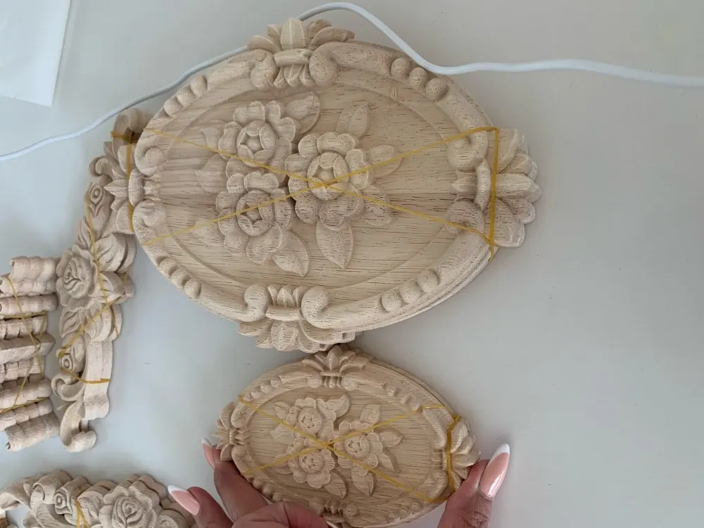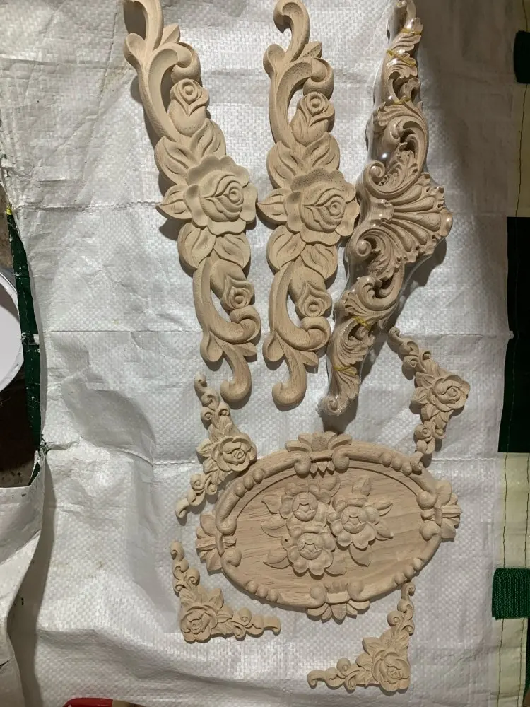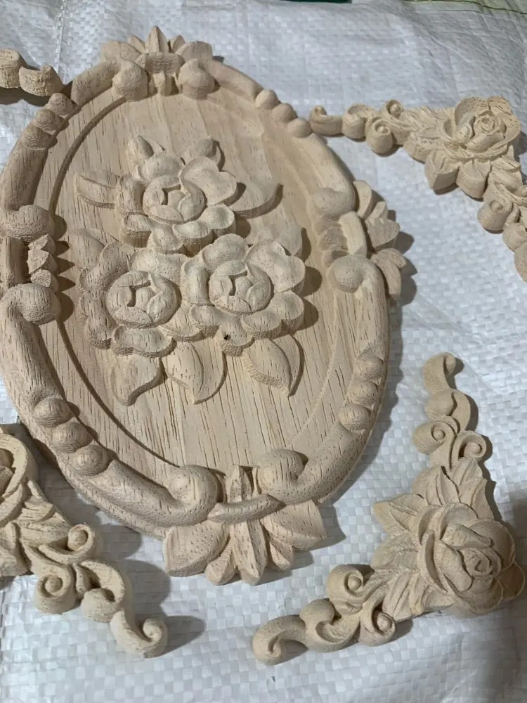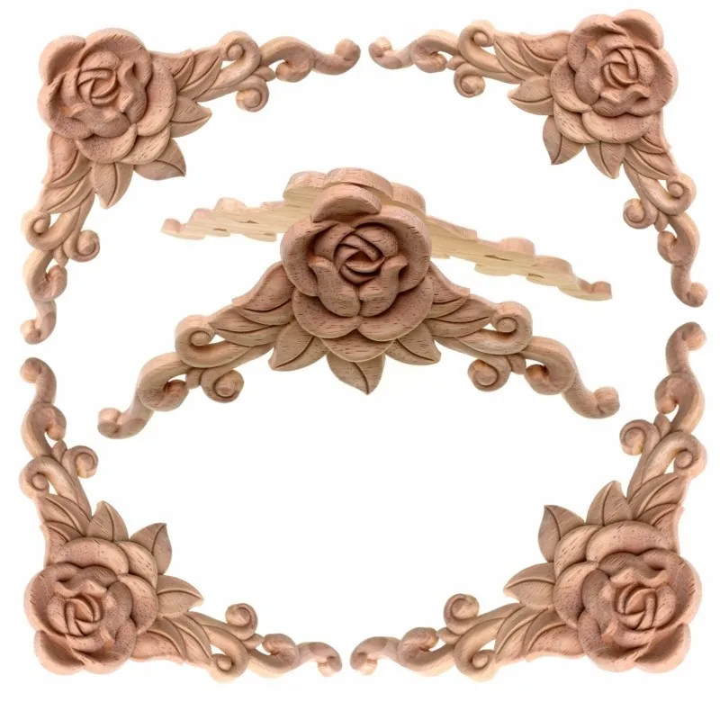 Цветочная деревянная аппликация RUNBAZEF SRose наклейки с резьбой, угловая Аппликация Украшение для рамки, деревянные фигурки, декоративные поделки для шкафа