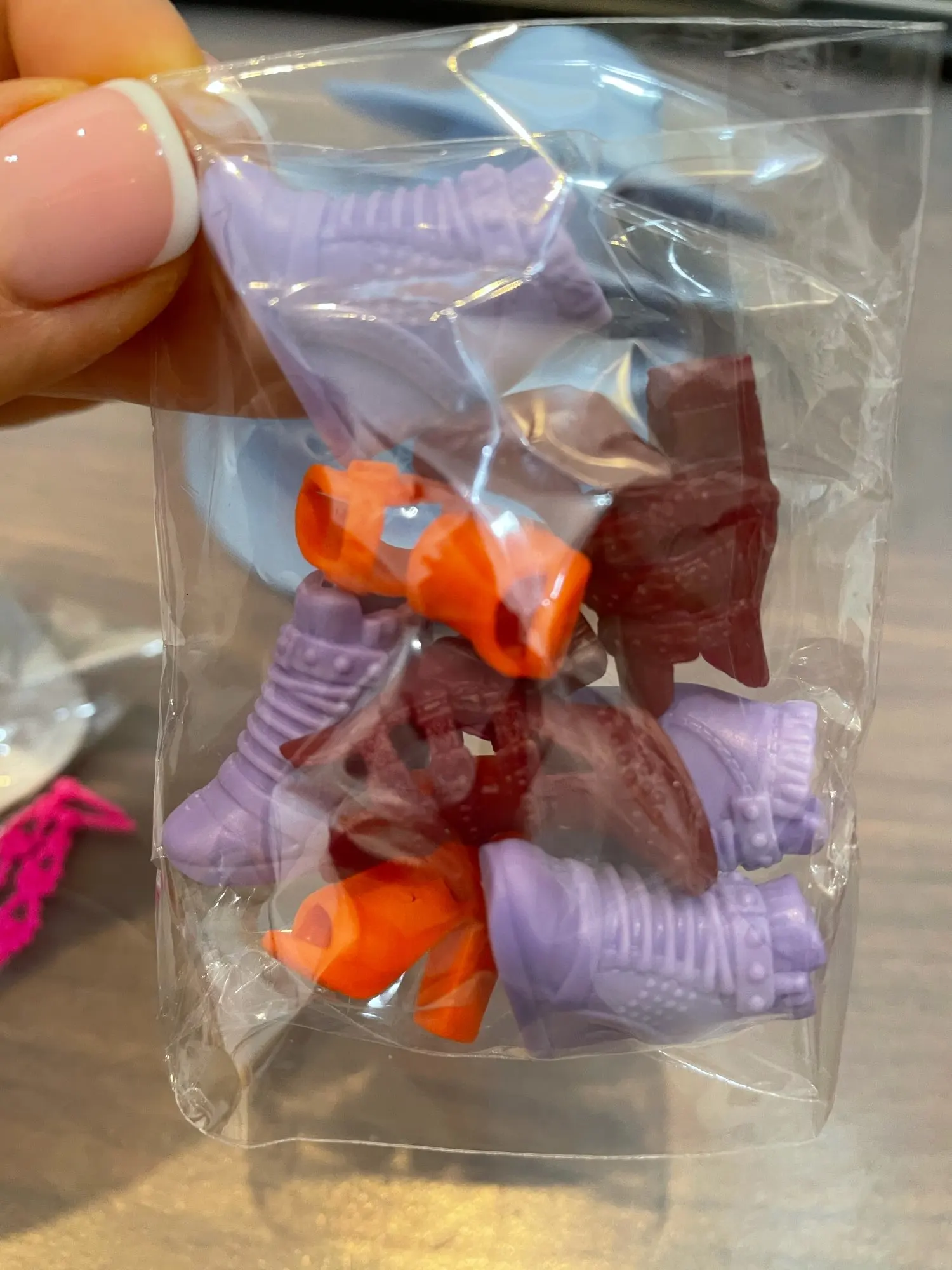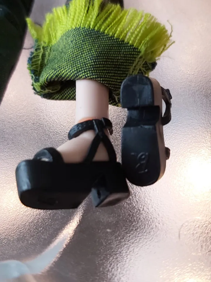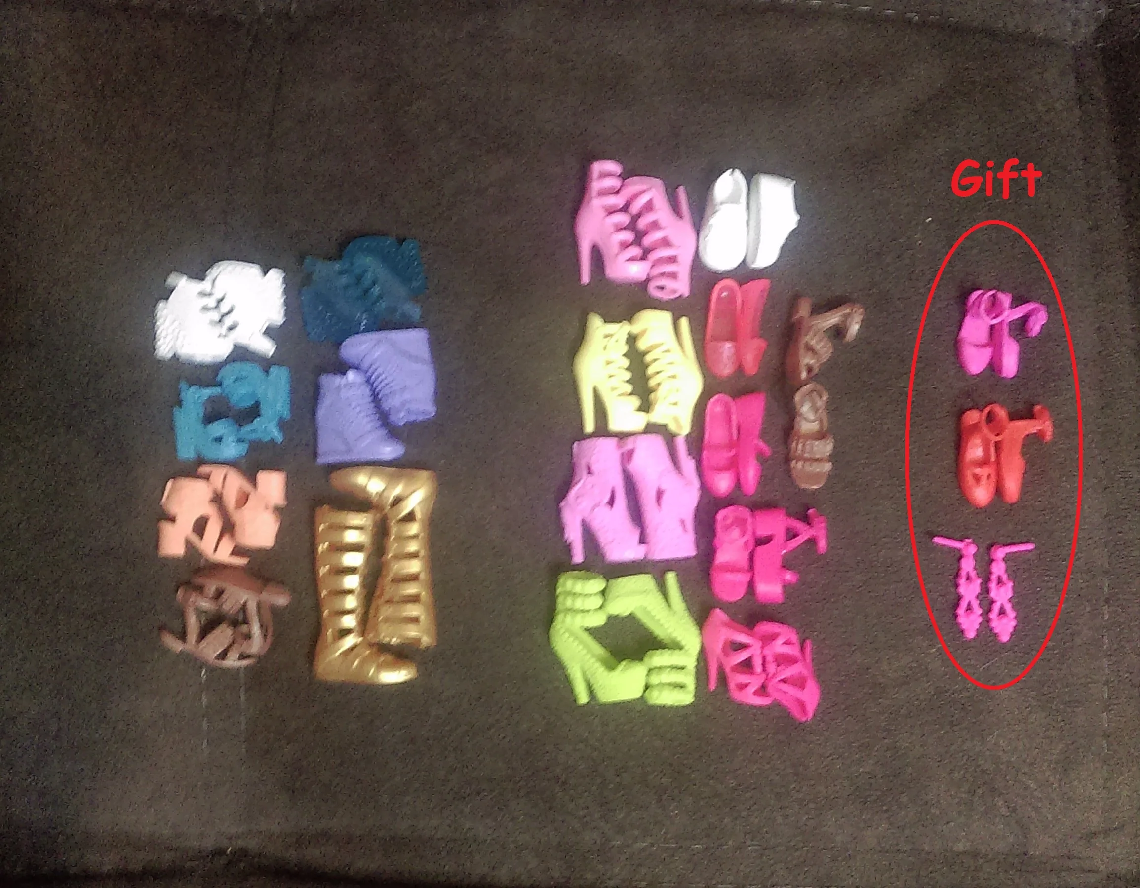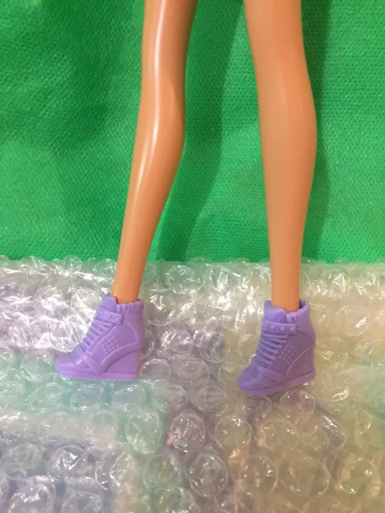 Как на фото. Подходит для Барби на высоком каблуке. Есть штамп Барби «B» на нижней части и такой же пластик, как у наших других туфель Барби. Прибыла в Канаду примерно через полтора месяца. Я заказал много отдельных пар обуви, и никаких ошибок не было. Они даже отправили бесплатную пару обуви.