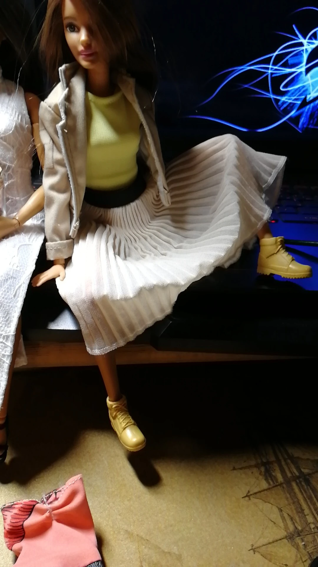 Все супер. Хотя верх платья с джинсовой юбкой отличается от картинки продавца, но на качестве это никак не сказалось. Очень порадовал товар: швы ровные, нитки не торчат, обувь чистая, без излишком пластика. В подарок положили пару сережек для куклы. Заказывала белое платье, жёлтый костюм с юбкой, платье с джинсовой юбкой, чёрные сандалии на танкетке и песочные ботинки. Всё супер, советую. Доставлялось 7 дней до Санкт-Петербурга, но отправление ждала около 10 дней из-за загруженности .