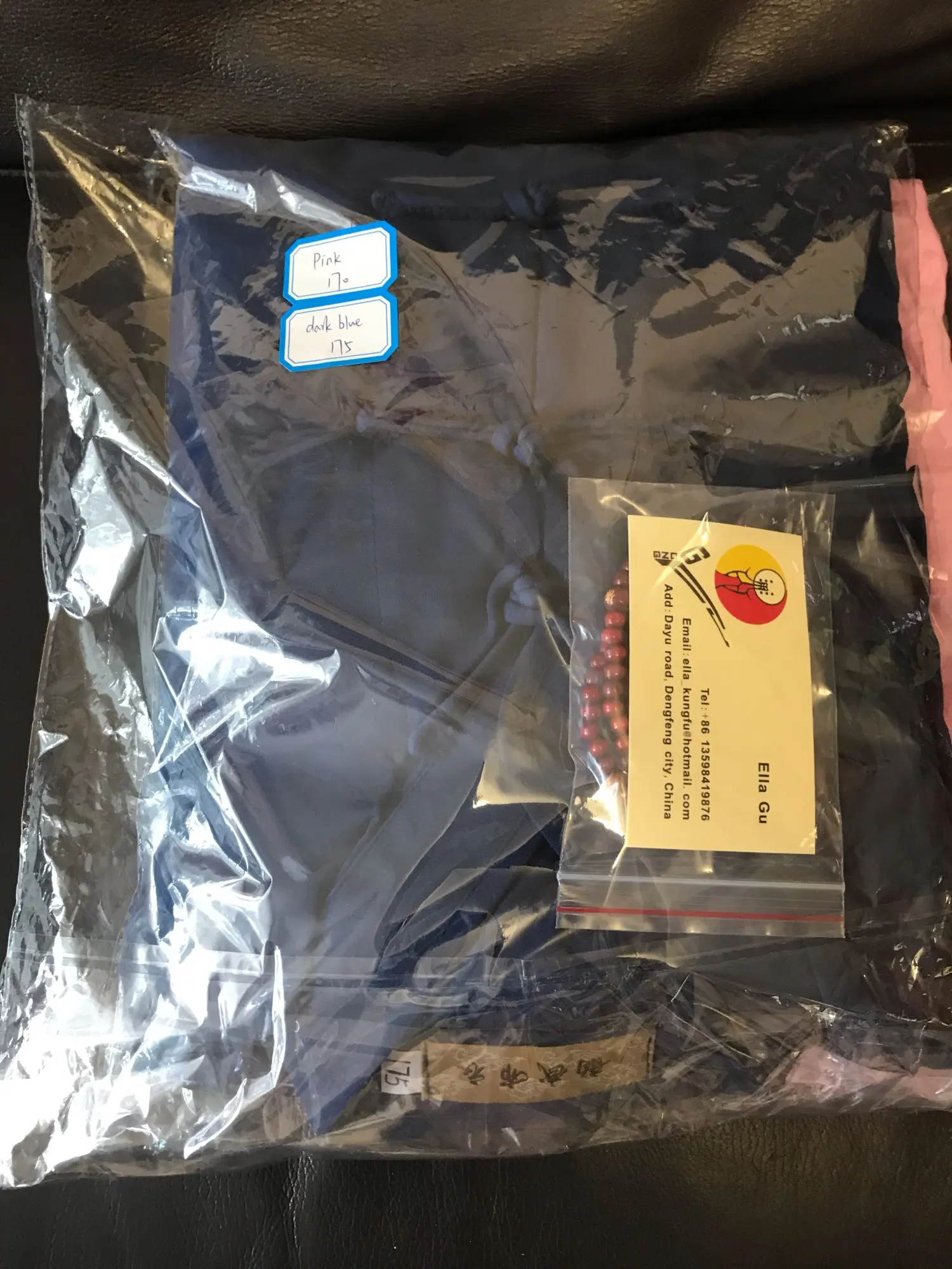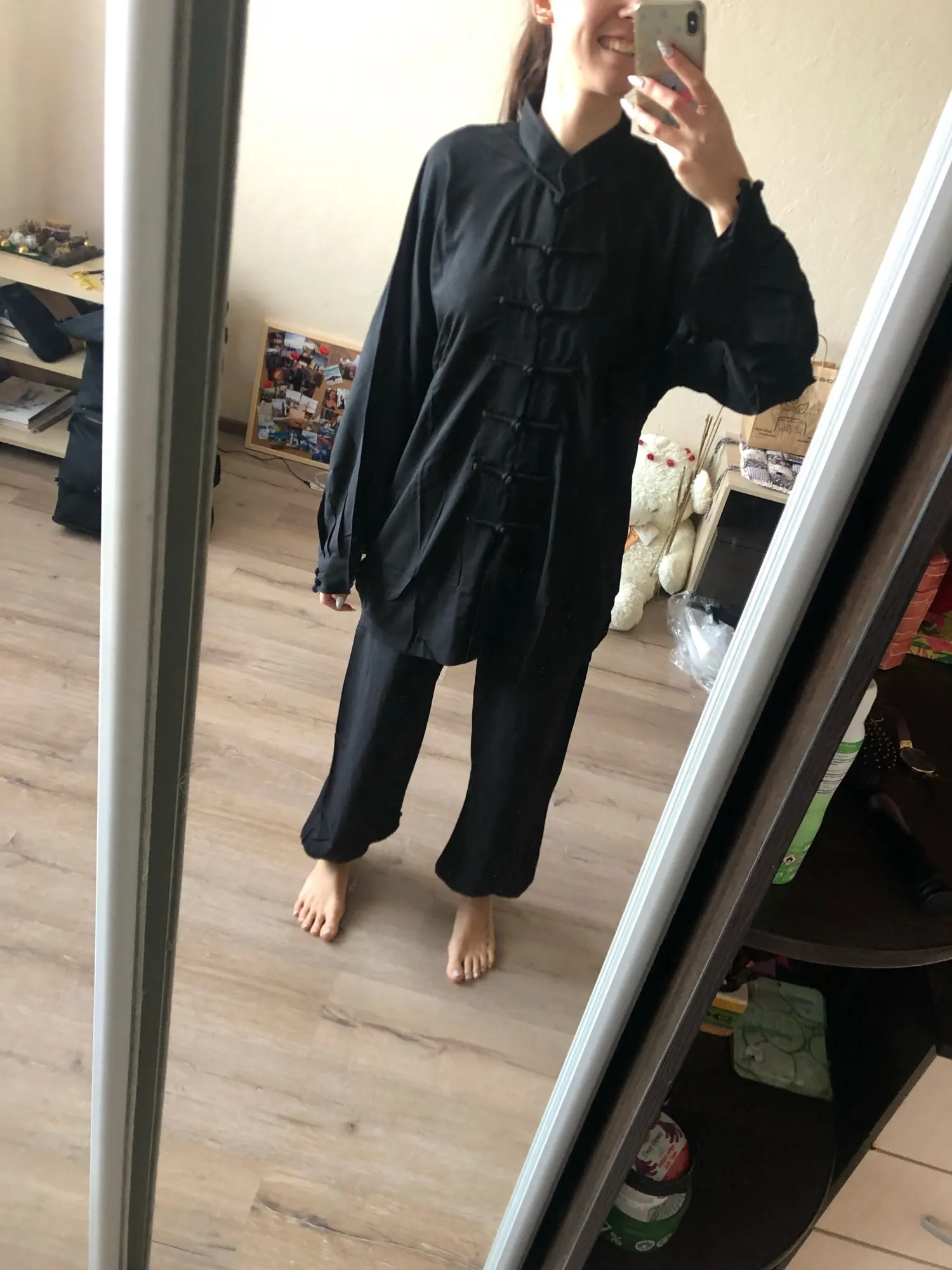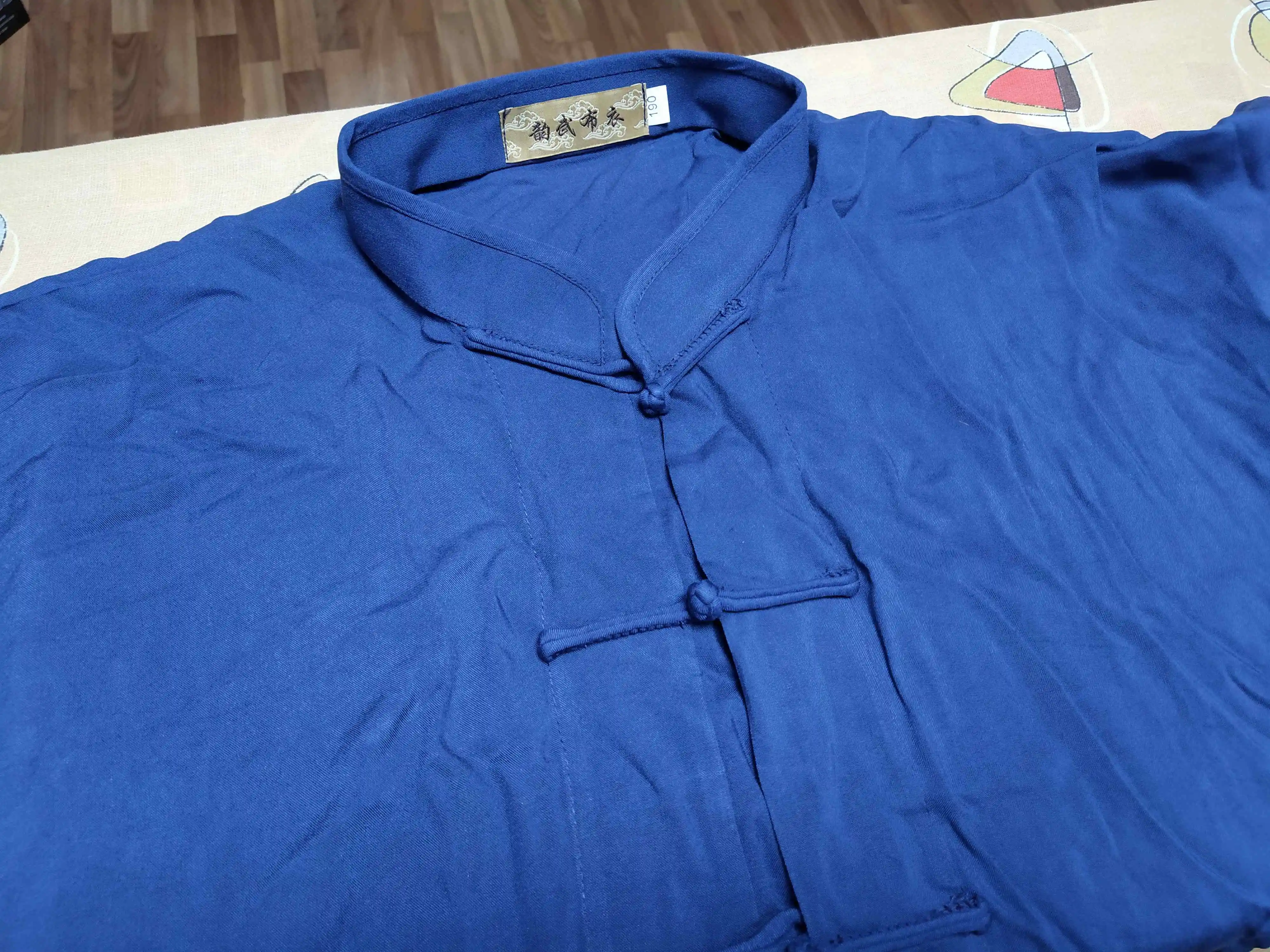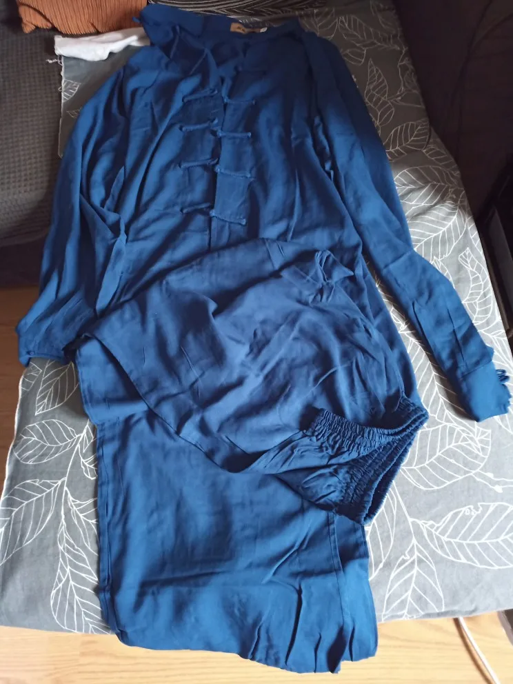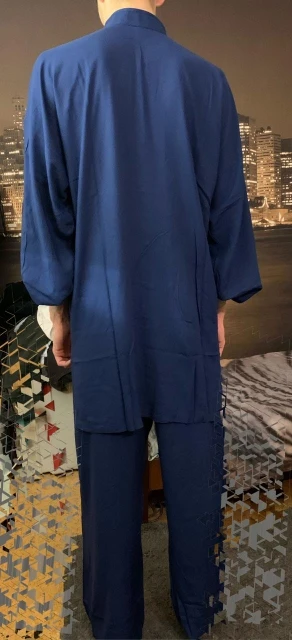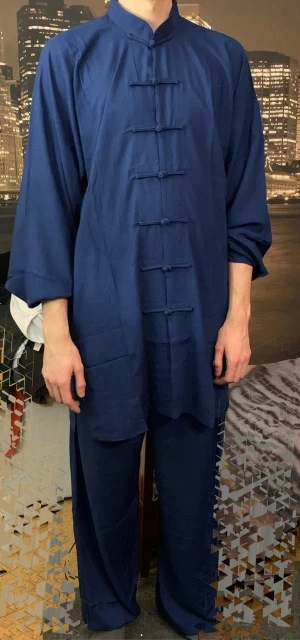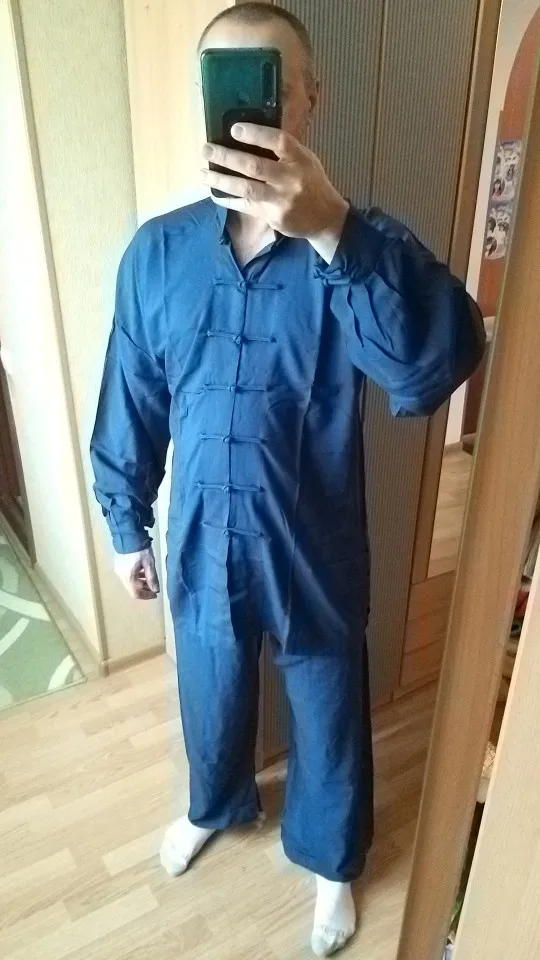 Посылка пришла быстро, аккуратно упакована. Внутри был подарок - милые чётки, большое спасибо! Это приятно! Костюм на рост 158 среднего телосложения (заказывала 160) подошёл. Горловина подошла: не давит и не широкая. Ткань приятная к телу, хочется тренировать тайчи именно в этом костюме. Планирую заказать ещё парочку таких в других цветах.
