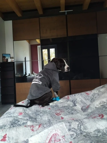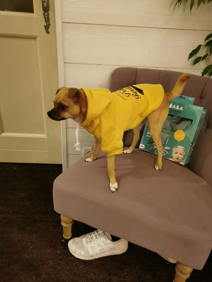 Качество хорошее, но размер. Собака 10 кг. На фото одет размер 2xl , очень большой. Не может в нем ходить, но зато капюшон большой. На фото где 3 кофты размер 2xl l m, размер l не налез, m для шенка только примерно килограмма 4. Капюшоны маленькие. В авито