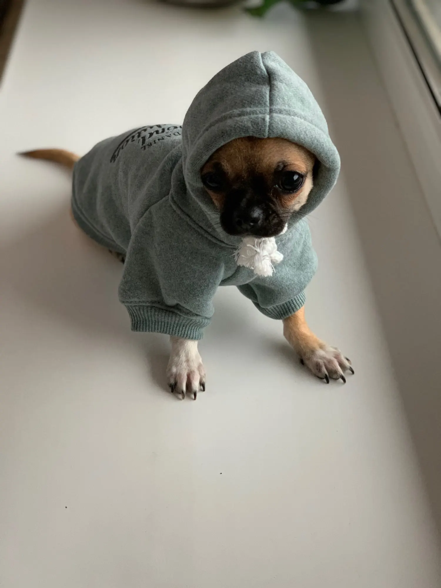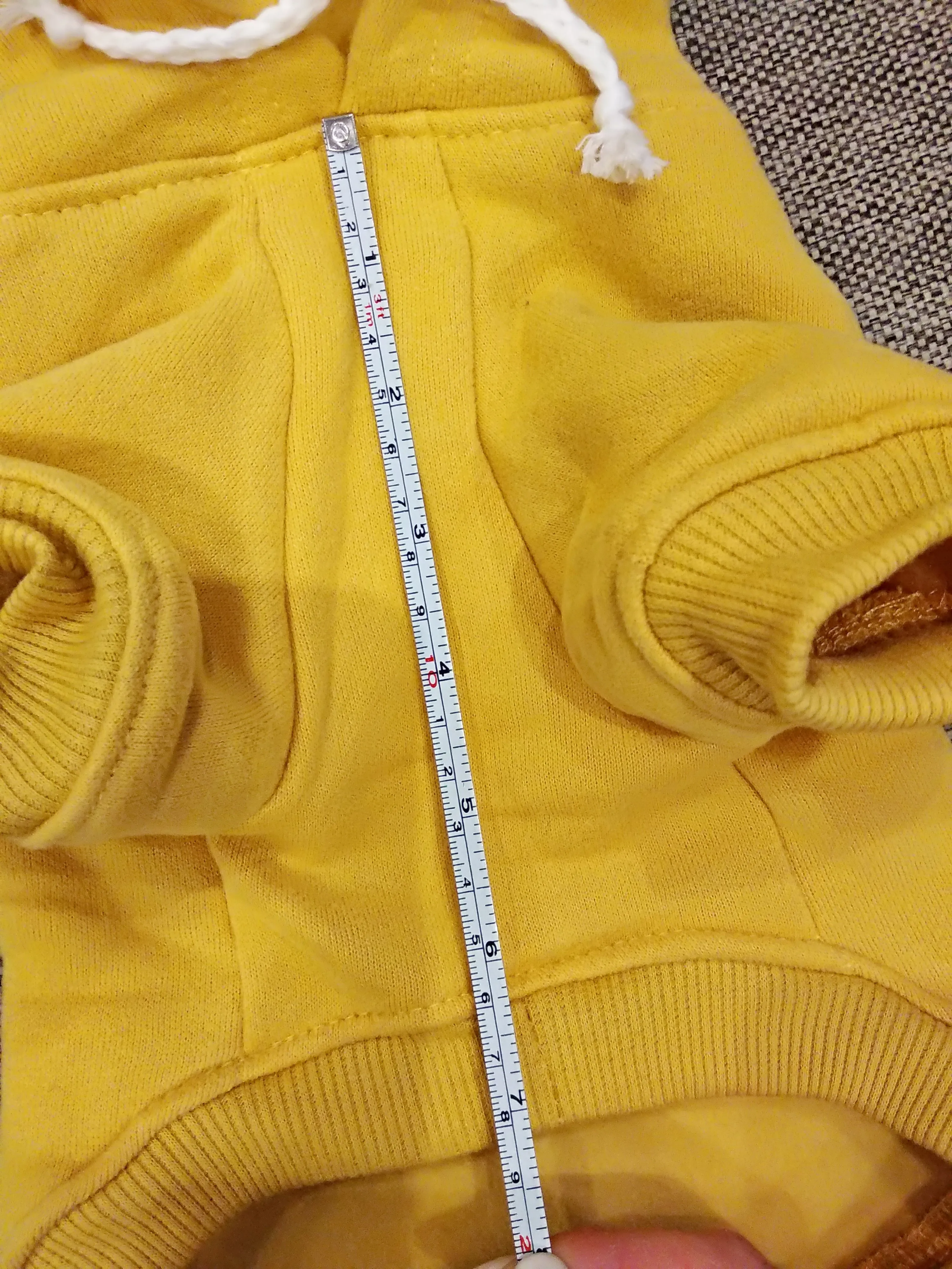 Товар отличного качества! Хлопок, с изнанки флисовый начесик, длина по спинке от шва с капюшоном 24 см., по груди 18 см., полностью соответствует фото. На чихуа 2,4 кг (по спине 27-28 см.) заказала размер S - сел идеально! Немного оверсайз)) , собаке удобно двигаться! Ориентировалась на предыдущие отзывы (действительно немного большемерит, возможно потому, что свободная). Очень рекомендую товар и продавца. НЕ удержалась и заказала еще одну в зеленом цвете! ))) Жду!) До Омска посылка дошла за 2,5 недели.