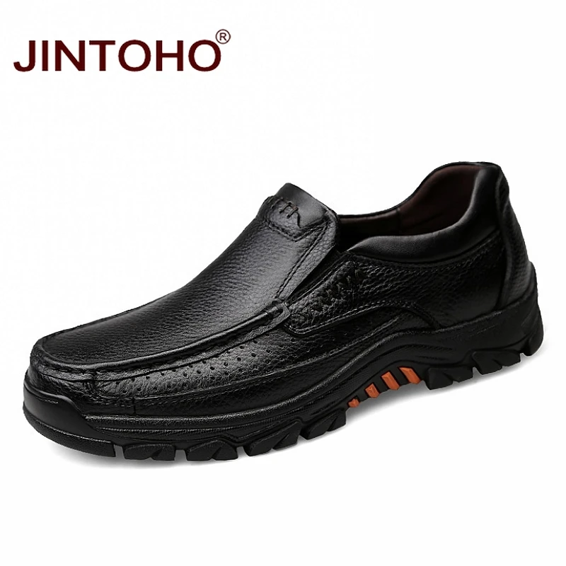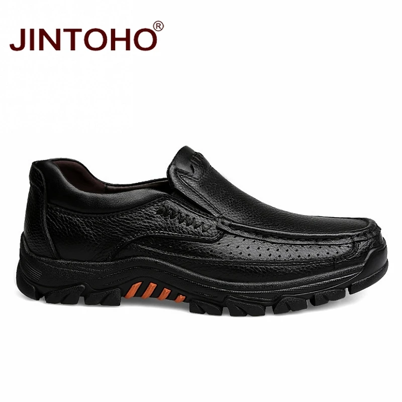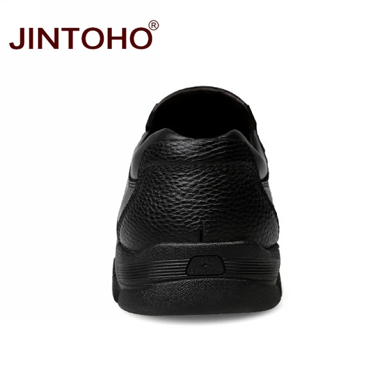 Туфли JINTOHO мужские парадные из натуральной кожи, деловые туфли, без застежки, Классические лоферы, черные