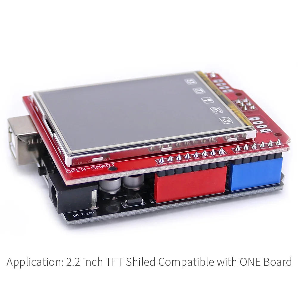 В комплект входит плата OPEN-SMART, а программа, расширительные щиты, IDE совместима с Arduino.В комплект входит 2,2-дюймовая Плата расширения сенсорного экрана TFT с использованием стандартного защитного интерфейса, что обеспечивает хорошую совместимость.Он интегрирует 2,2-дюймовый сенсорный экран, датчик температуры I2C, держатель для карт TF, контур преобразования уровня, и вторичная разработка проста.С модулем GPRS вы можете создать свой DIY телефон.С NFC модулем чтения вы можете создавать системы контроля доступа с фотографиями.С датчиком напряжения и тока, вы можете сделать осциллограф.-Может использовать его непосредственно для отображения символов, графики и изображений формата BMP. И сенсорное управление доступно;-Совместимость: поскольку sd-карта подключена к SPI контактам интерфейса ICSP, она совместима с платой.-Тип сенсорного экрана: резистивный сенсорный экран.-Сенсорная ручка: длина 9 см;-Разрешение: 176x220;-Размер дисплея: 2,2 дюйма;-Рабочее напряжение: 5 В;-Логический уровень: 5 В/3,3 В;-бортовой 3,3 В/300 мА Регулятор цепи;-Рабочий ток: themaximum 150 мА-Используйте булавки A0 ~ A3, D4 ~ D13. И интерфейс I2C, D0 / D1 / D2 / D3 доступен, пожалуйста, обратитесь к схеме продукта для получения подробной информации.-Он выводит I2C интерфейс для Ar duino платы, он может подключаться к модулю DS1307 RTC, BMP280 модуль барометрического датчика давления, AP3216 цифровой датчик приближения окружающего светильник.-Он выводит интерфейс RX / TX, он может подключаться к последовательному ESP-07 / ESP-12 Wi-Fi-совместимый модуль, серийный MP3 модуль, серийный GPRS модуль.-Встроенный слот Micro SD, поддержка карты Micro SD / TF;-Встроенный датчик температуры LM75: по умолчанию I2C Адрес 0X48, масштаб-55 ~ 125'C-Очень подходит для цифровой фоторамки, осциллографа, функционального генератора, монитора системы обнаружения.Фотографии