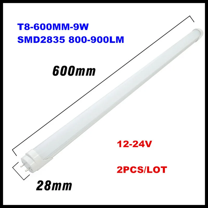 2 шт./лот 24 В Светодиодная лампа T8 люминесцентная Светодиодная лампа 600 мм 9 Вт Светодиодная солнечная трубка CE & ROHS 2FT 0,6 м 12 В 24 В Светодиодная лампа для помещений