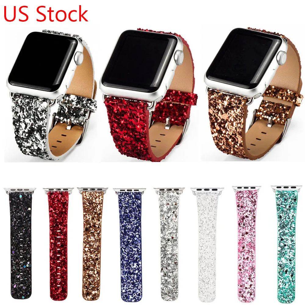 Блестящий ремешок из искусственной кожи для Apple Watch Series 5, 4...