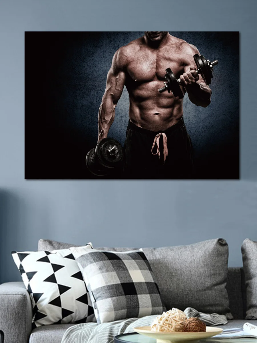 Штанга тренажерный зал мускулов человек бодибилдер мощность настенные постеры картина домашняя гостиная украшение для спальни SH05