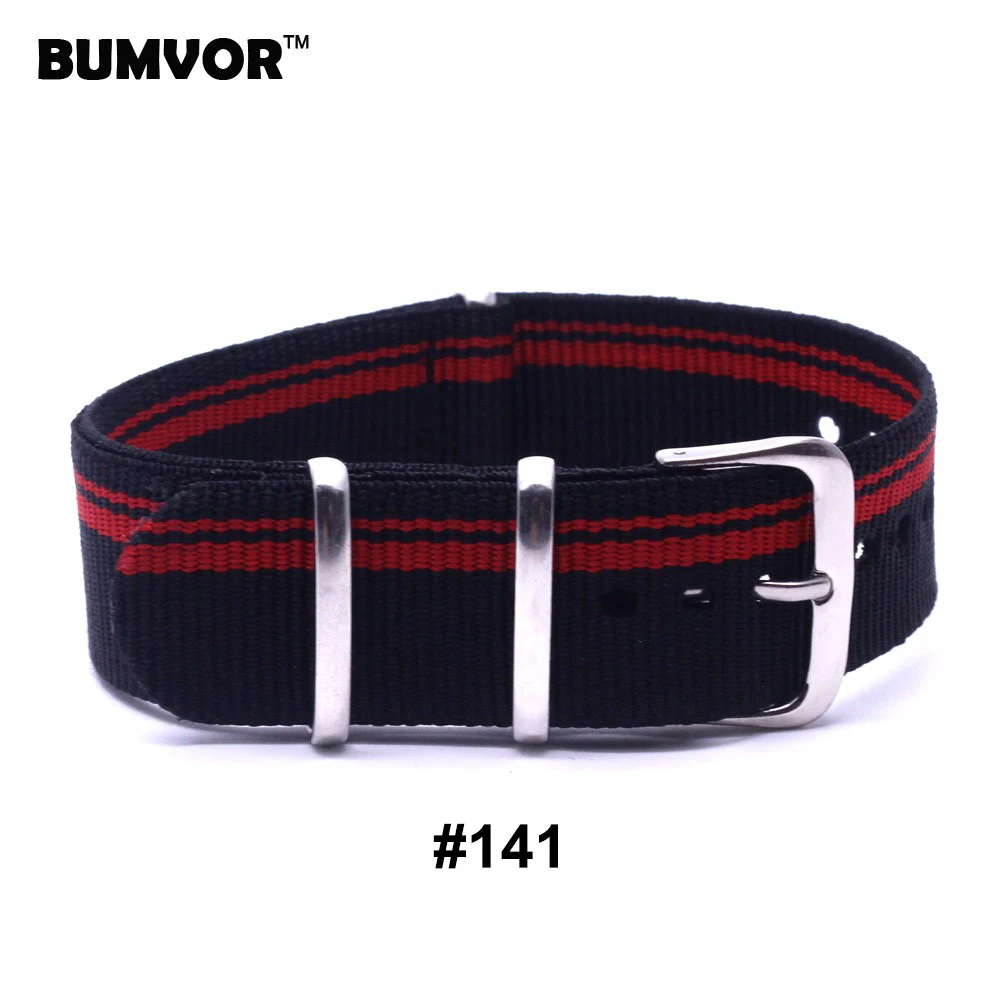 Повседневное 20 мм черный, красный в полоску нейлоновая ткань, парусина Нержавеющаясталь пряжкой Спортивные кварцевые наручные часы для использования в сложных условиях группа BUMVOR