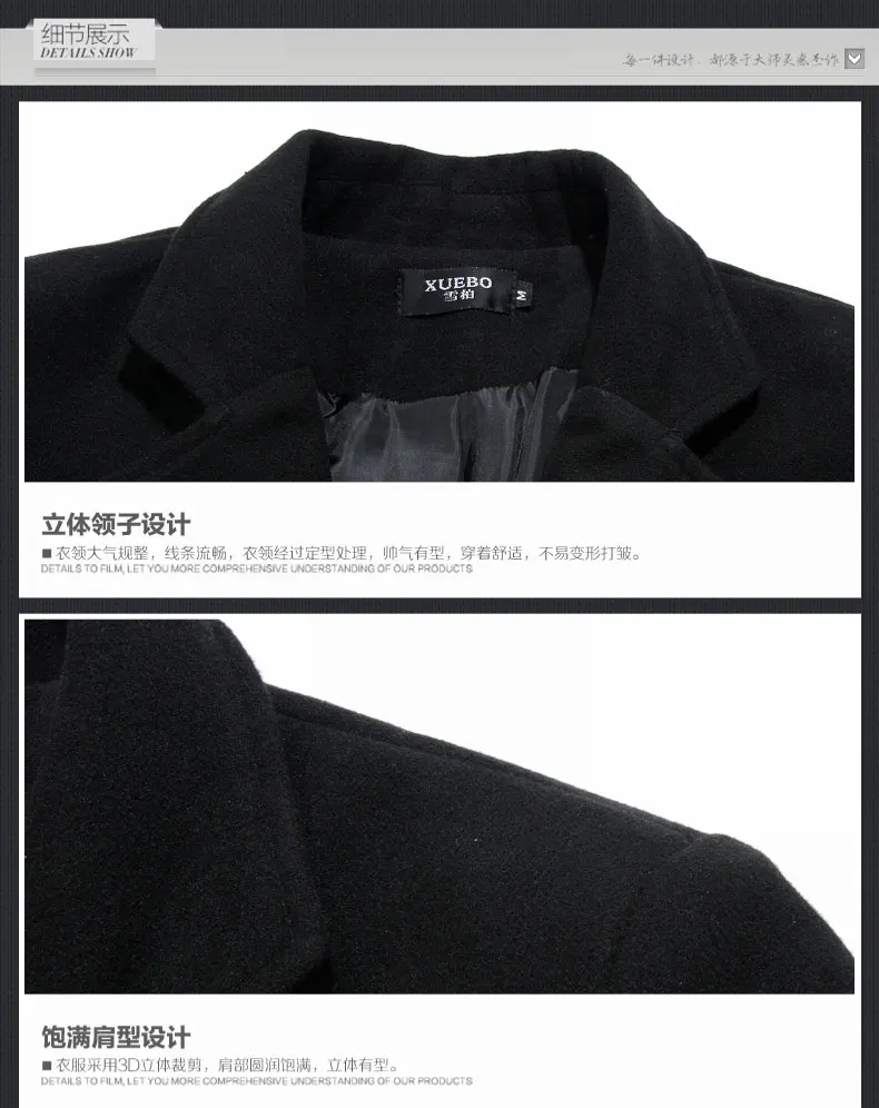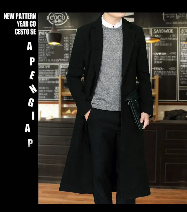 Новое зимнее шерстяное пальто, мужское длинное шерстяное пальто для...
