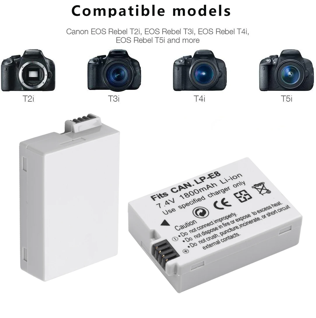 Аккумулятор PROBTY для камеры Canon EOS 550D 600D 650D 700D Rebel X4 X5 X6i X7, 1800 мАч, LP-E8