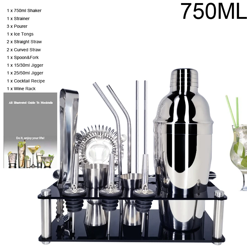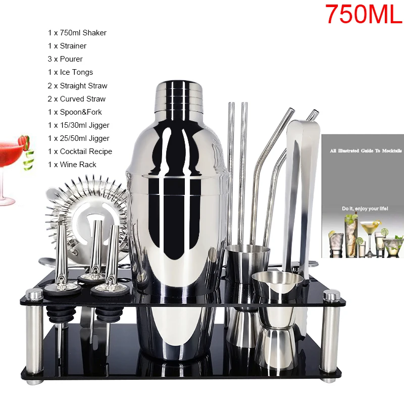 Коктейльный шейкер из нержавеющей стали, миксер для напитков 600-750 мл, набор бармена, инструменты для барной стойки с винной полкой, 1-14 шт. в наборе