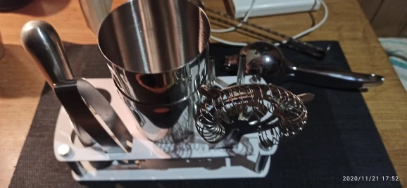 Для неискушенного человека отличная вещь. как подарок - вообще класс! Смотрится маленькой (вместе с подствакой), но на самом деле всё вполне работоспособное и правильное ( больше имею в виду шейкер с ложкой и стрейнером). джиггеры на пару мл меньше чем нужно, но не критично. И ещё из недостатков - как по мне очень тонкий акрил - 2,5 или 3мм. Также раз уж это комплект, то можно было доложить сито-стрейнер т.к. штатного иногда будет нехватать, особенно для яичных коктейлей и т.п. (покупается в любом хозмаге за 100р). В общем своих денег стоит однозначно, а всё вышеперечисленное - мои личные придирки.