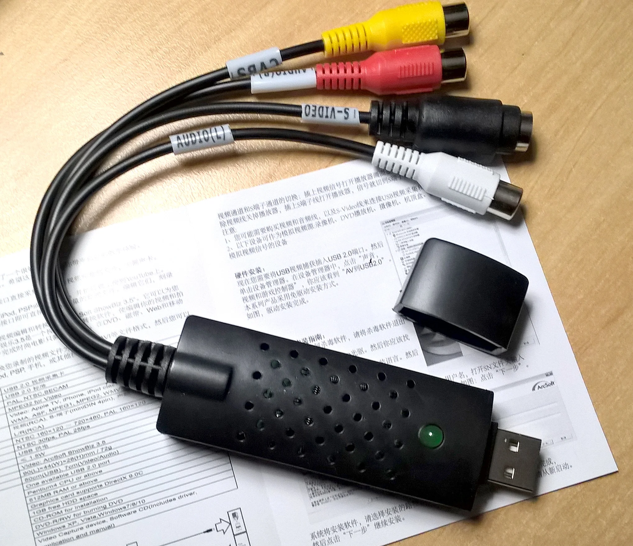 Адаптер для видеозахвата USB 2,0 обеспечивает связь между ПК и видеоустройством с разъемом RCA или разъемом s-видео, таким как VHS, VCR, DVD