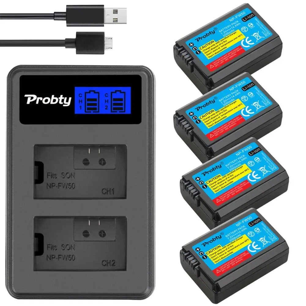 4 шт. 2000 мАч NP-FW50 NP FW50 батарея + LED USB двойное зарядное у...