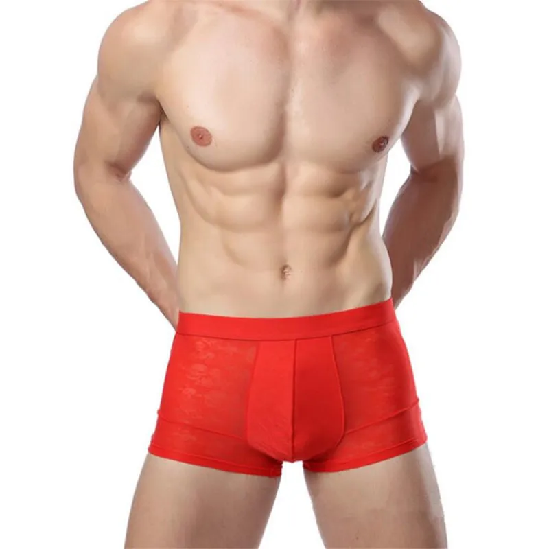 Трусы-боксеры мужские из бамбукового волокна, прозрачные пикантные кружевные, нижнее белье, шорты, подарок для мужчины, бамбуковые трусы