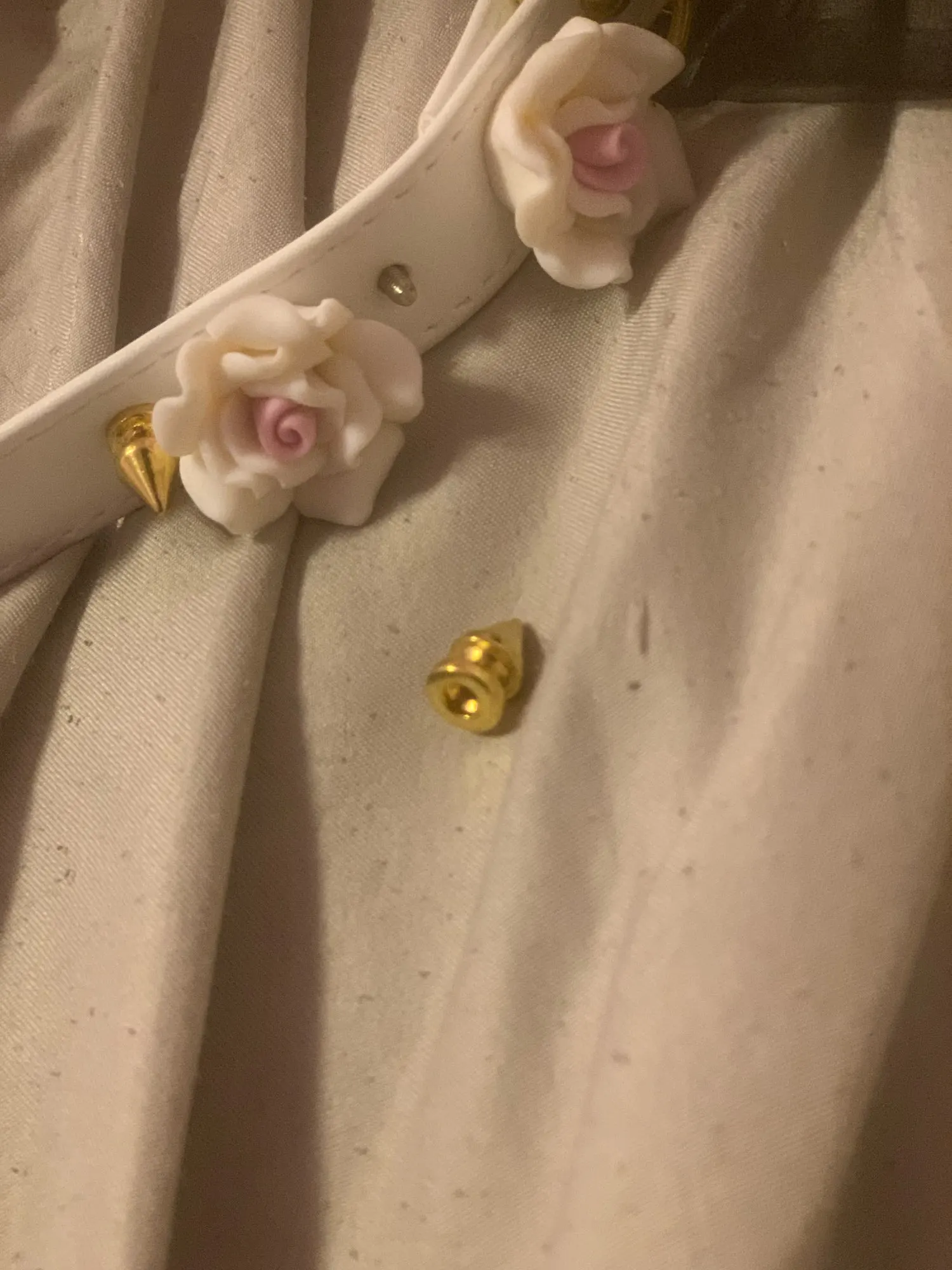 Очаровательный чокер, приятный на ощупь и хорошего качества и может быть отрегулирован на более широкие шеи. Один из шипов выпал всего несколько минут после того, как вынул его :( я, вероятно, могу починить его с помощью клея, но он не будет прикручиваться, независимо от того, сколько я попробую. Немного разочаровывает, но не разбивает сделку