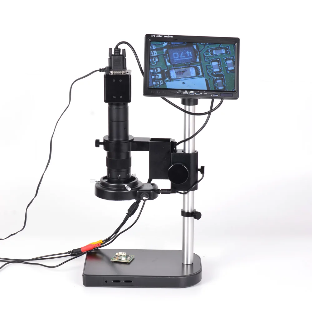 Цифровой промышленный микроскоп VGA, 2 МП, объектив с креплением типа с, зум 144, ЖК-монитор 7 дюймов, светодиодный, регулирусветильник, для ремонта печатных плат