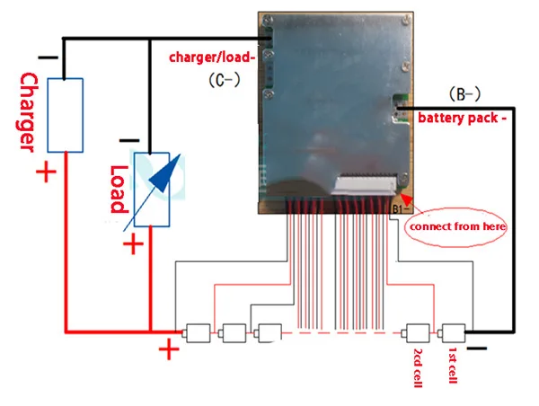 Последовательность проводов:Первая линия припоя B-к отрицательному аккумулятору, подключите кабель баланса к батарее (B1 B2. .. В24), вставьте кабель (гнездо), после проверки, затем подключите c-линию, затем посмотрите на количество общего напряжения батареи, если напряжение между C-и B + равно общему напряжению, это должно работать должным образом.