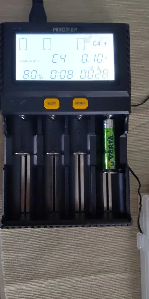 Неплохая зарядка. Заряжает, разряжает и тестирует в четвертом слоте. Греется, но не сильно. Из минусов: ток разряда ограничен 400 mA и плохая фиксация типоразмеров AA и AAA.