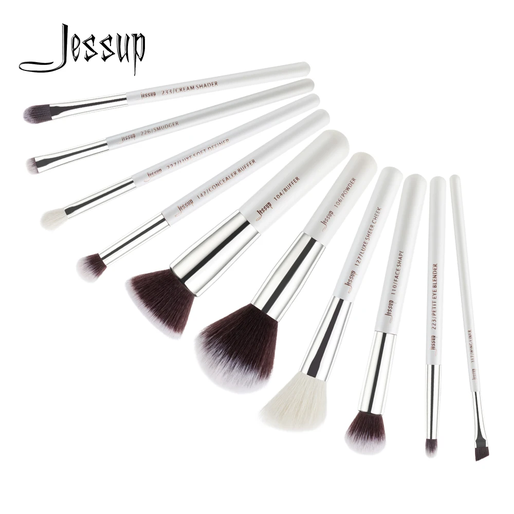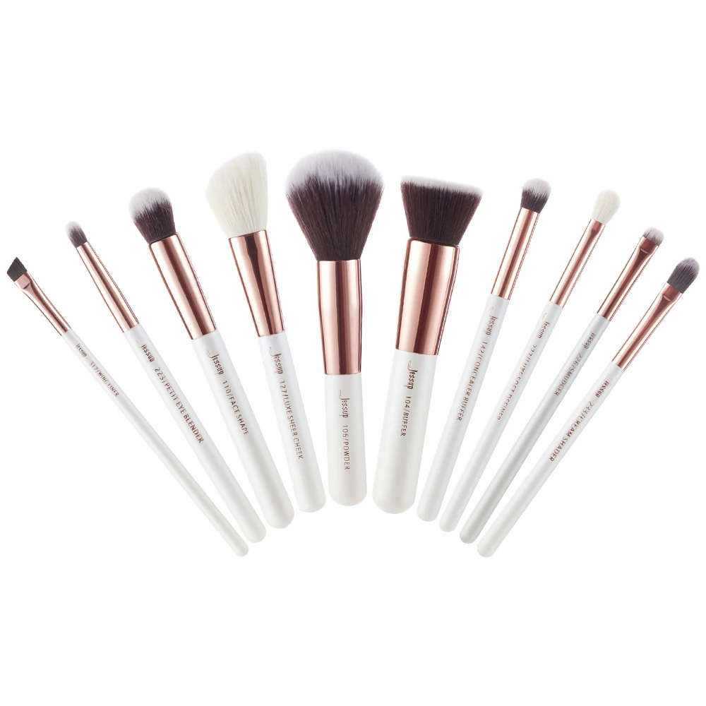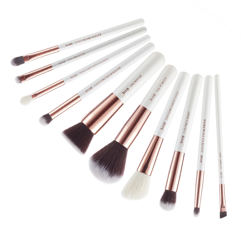 Jessup Beauty 10 шт., кисти для макияжа из козьего синтетического волоса, набор теней для век, тональный крем, консилер, косметический набор, 5 цветов