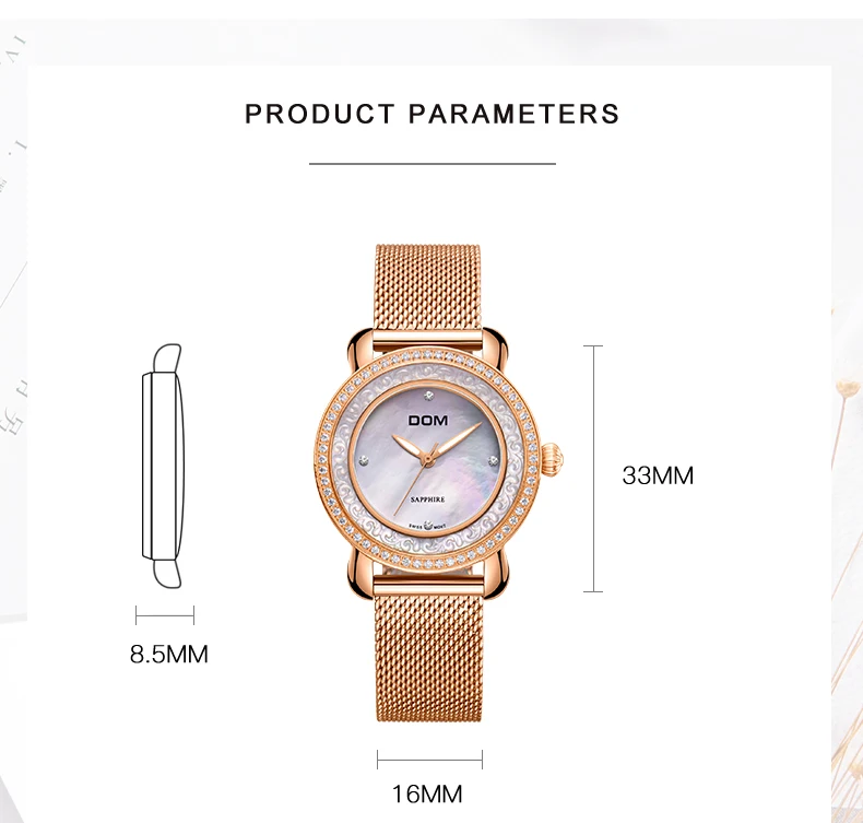 DOM Роскошные модные женские часы, женские часы из нержавеющей стал...