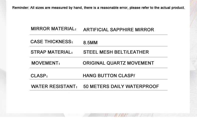 Бренд: DOM-Дисплей: аналоговые кварцевые часы-Стиль: Модный, Повседневный, роскошный,-Особенности: Водонепроницаемость,Основная особенность:-100% новый с биркой и высокого качества;-Водонепроницаемость 3 АТМ/200 м (можно принимать холодный душ и плавать, не использовать часы под водой, не использовать горячую воду);-Качественный чехол из цинкового сплава;-Качественная нержавеющая сталь/кожаный ремешок;Приближение спецификации:-Диаметр чехла: 3,3 см-Толщина чехла: 0,8 см-Ширина ремешка: 1,6 см-Общая длина: 17 смПосылка-1 часы DOM-1 коробка DOM