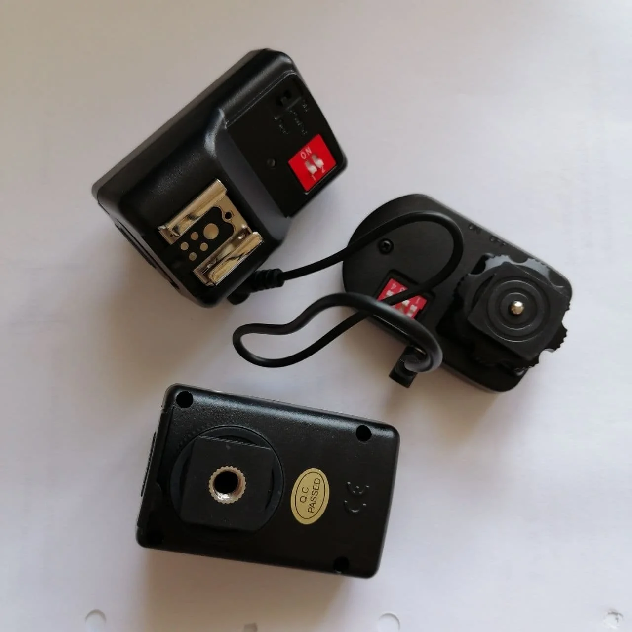 Особенности:Этот набор состоит из отправителя сигнала и двух триггеров приемника.Универсальный интерфейс горячий башмак, совместим с Canon, Nikon, Sigma, Olympus, Pentax и др. (кроме Minolta SONY, для них используется специальный горячий башмак).Универсальная частота 433 МГц, 4 канала.С интерфейсом студийной вспышки может запускать несколько видов студийных вспышек.Дальность передачи до 30 м, без ограничений с направлениями или углами.1/4 "гайку можно соединить со штативом или держателем светильник, чтобы сделать вспышку безопасной и стабильной.Энергосберегающая конструкция с батареей 12 в 23 а передатчика и 2 * батарейки типа "ААА" (не входит в комплект) приемника.Поставляется со шнуром синхронизации ПК для камер без разъема горячий башмак. Примечание: Этот триггер не поддерживает функцию TTL. Характеристики:Мощность передатчика: 23A 12V Мини аккумулятор (в комплекте)Питание приемника (переменного тока): 2 щелочных батарейки AAA 1,5 В (не входят в комплект)Рабочее расстояние вне помещения: Макс. 30 м/90 футов (Открытая Зона, без фраиса)Рабочее расстояние в помещении: Макс. 25 м/75 футовКанал: 4 каналаЧастота: 433 МГцСинхронная скорость: Макс. 1/250 секЦвет: черныйМатериал: металл + пластикРазмер посылка: ок. 10*8,5*5 см/3,9*3,4*2 дюймаВес посылка: 113 г/4,0 унции Комплектация:1 * 4-канальный передатчик2 * 4-канальные приемники1 * Шнур синхронизации (от 2,5 мм до ПК)1 * Руководство пользователя (на английском языке) Примечание:Этот элемент включает только набор триггеров и шнур синхронизации.