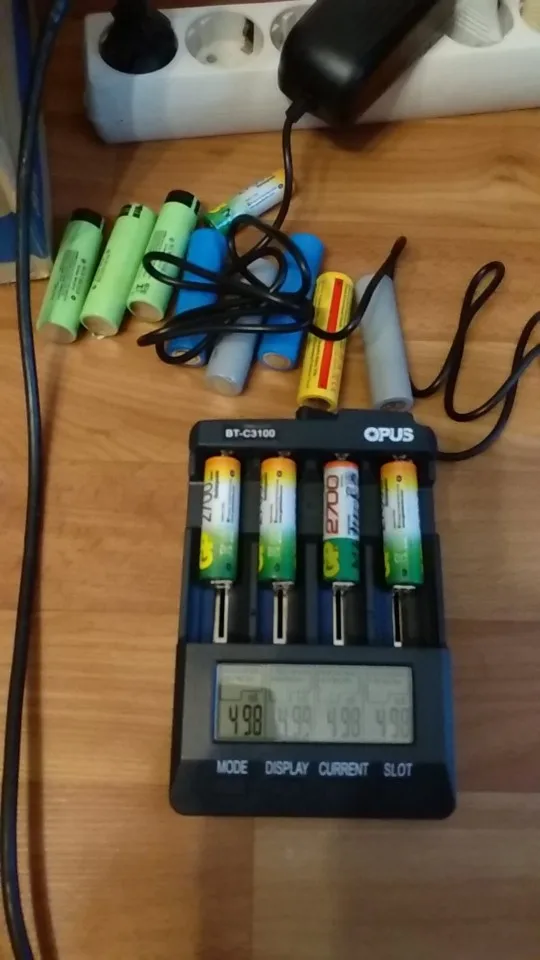 был такой же, но начал шуметь вентилятор. заказал три разных, а потом подумал, аккумуляторов прибавилось, дай закажу целиком зарядку. Вентиляторы еще едут, а новая зарядка заряжает потихоньку. За 9 лет работы прошлой зарядки мы потеряли один пропеллер и один блок питания. Износили 24 шт 18650, 70 шт АА и 20 шт. ААА. Зарядкой очень доволен. Когда сгорел бп, купил похожую по виду, она прожила 4 месяца и перестала реагировать на кнопки и погасила навсегда экран. Хотя на дефолтнлм токе заряжала. Вот блок питания от нее и работает сейчас с этой моделью. Надеюсь, эта проживет не меньше.