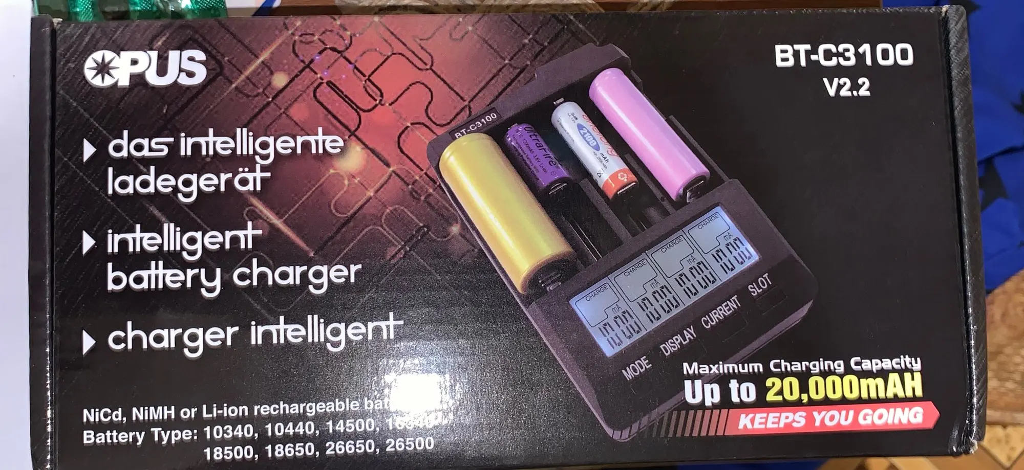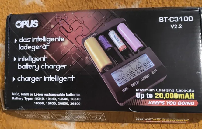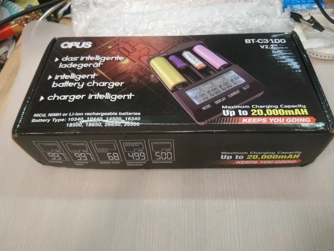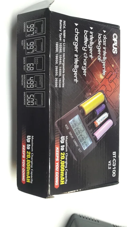 Зарядное устройство Opus BT-C3100, цифровая умная зарядка, на 4 батареи, с ЖК-дисплеем, для батарей Li-Ion, NiCd, NiMh, AAAAA, 10440, 18650
