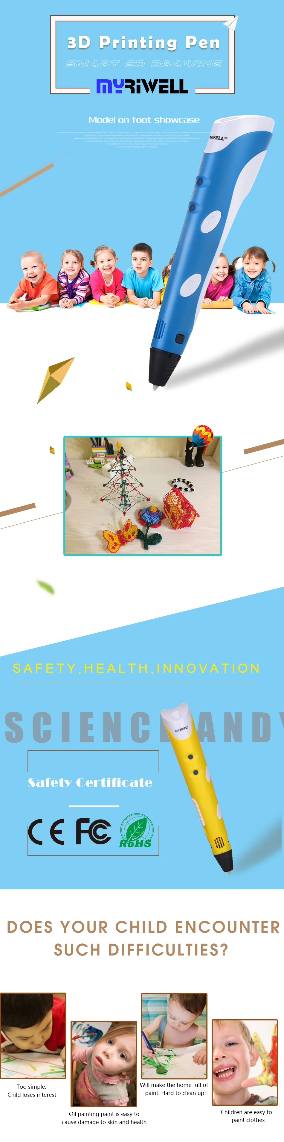 Волшебная 3d-ручка Myriwell, ручка для рисования и 3d-печати с ABS-наполнителем, креативная игрушка, подарок для детей, дизайн для подарка на день рождения