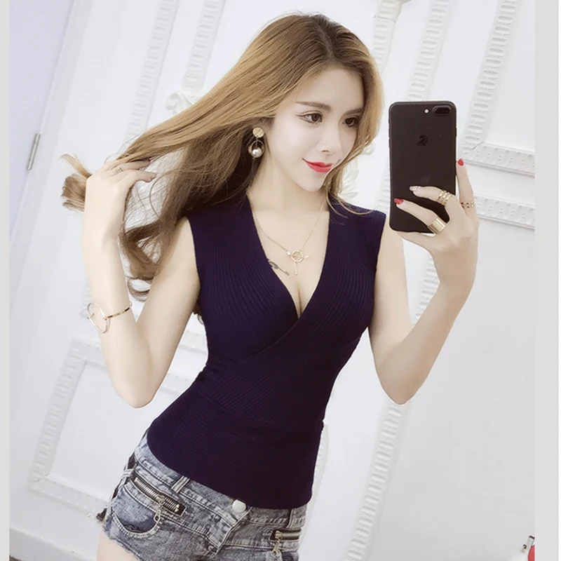 Майка женская трикотажная без рукавов с V-образным вырезом, 11 цветов
