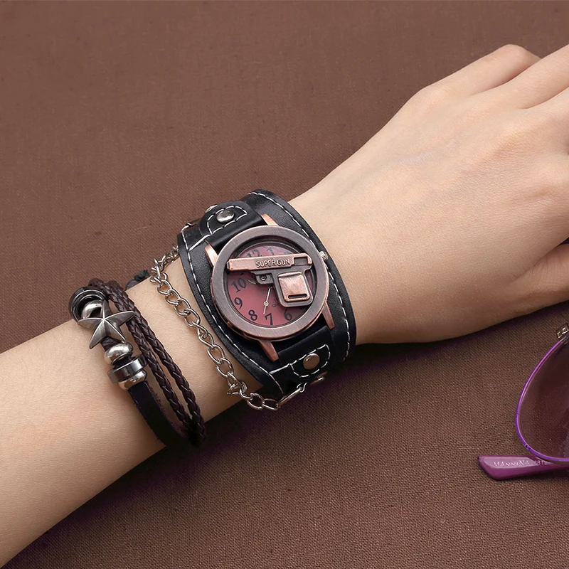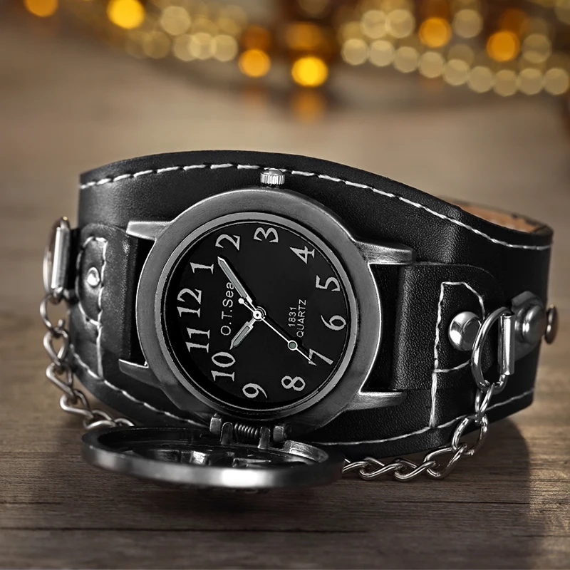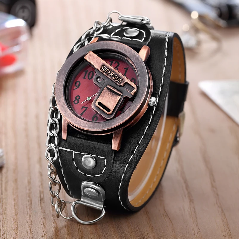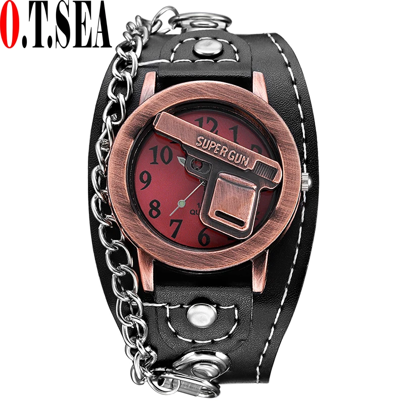 Распродажа, роскошные мужские и женские наручные часы O.T.SEA Брендовое оружие, с рисунком черепа, с кожаным ремешком, Спортивные кварцевые наручные часы в стиле панк, мужские часы 1831-7
