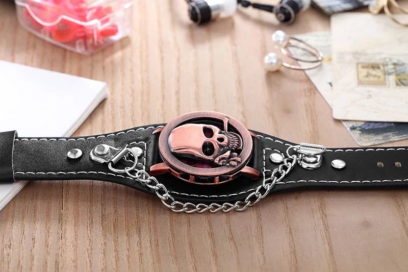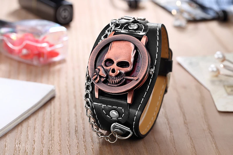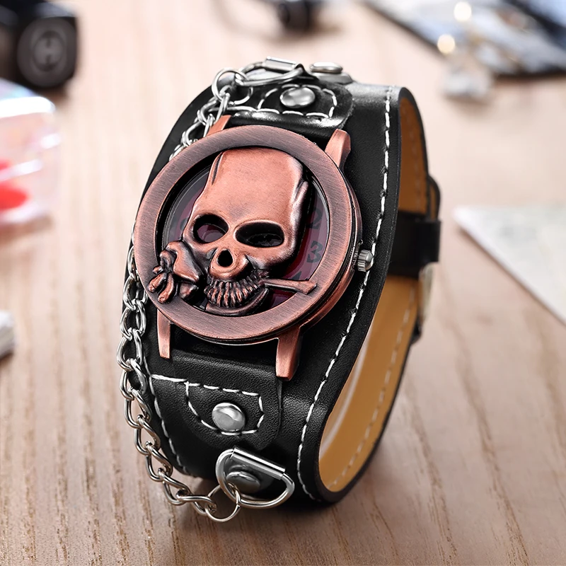 Новый O.T.SEA бренд медь уникальный череп кварцевые часы в стиле панк роскошные кожаные спортивные часы Relogio Masculino 1831-5