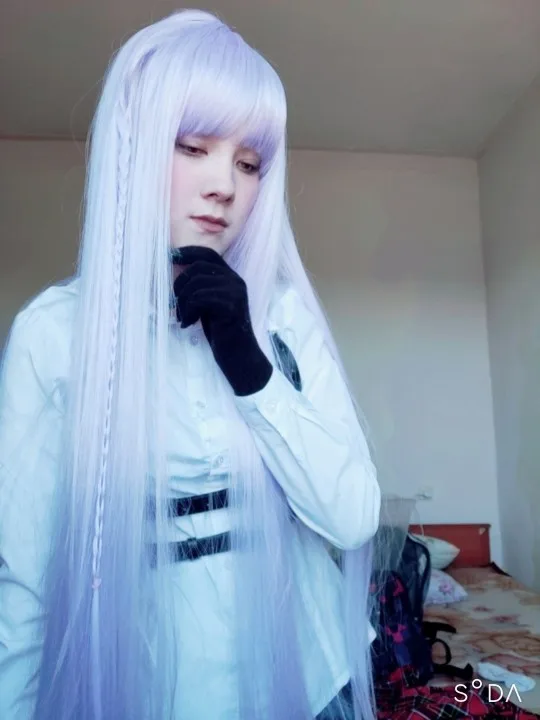 Мне очень нравится этот парик, его длинный, красивый и мягкий. Она еще не запуталась для меня (я его уже месяц), и если она легко распутается. Цвет, соответствующий фотографиям, довольно красиво, это о цвете «light wisteria». Волосы немного тонкие, но это делает их более приятными на ощупь, чем обычный парик для косплея. Имейте в виду, что этот парик не включает черный бант, который есть у Kyoko, поэтому вам придется найти/сделать свой собственный.