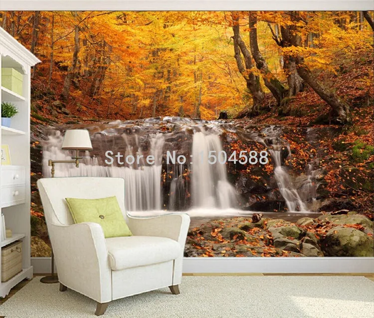 Красивый Осенний пейзаж водопада лес 3D Настенная картина ресторан кафе гостиная прикроватный фон Настенные обои
