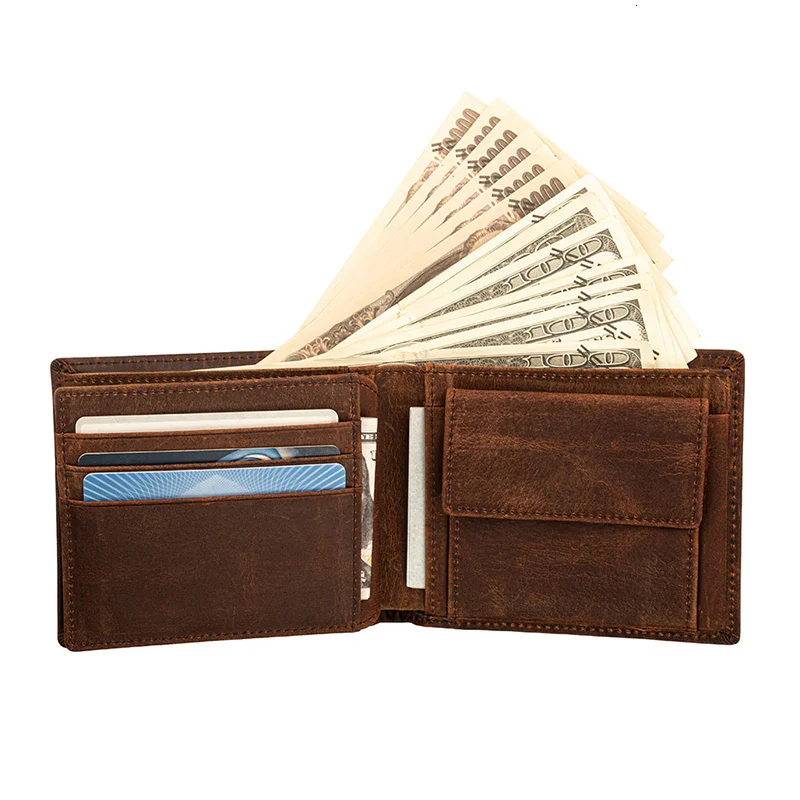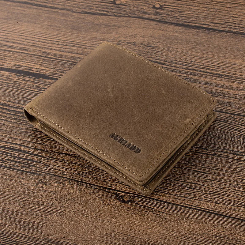 Кошелек мужской короткий из натуральной воловьей кожи, дизайнерский бумажник в стиле ретро, кредитница с европейские бумажники и кармашком для мелочи, B264-35
