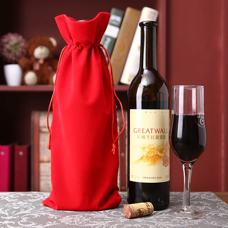 Бархатная сумка на шнурке для винных бутылок, 5 шт., 15x35 см, фланелевая сумка для винных бутылок, держатель для свадебной вечеринки, рождественского подарка на день рождения