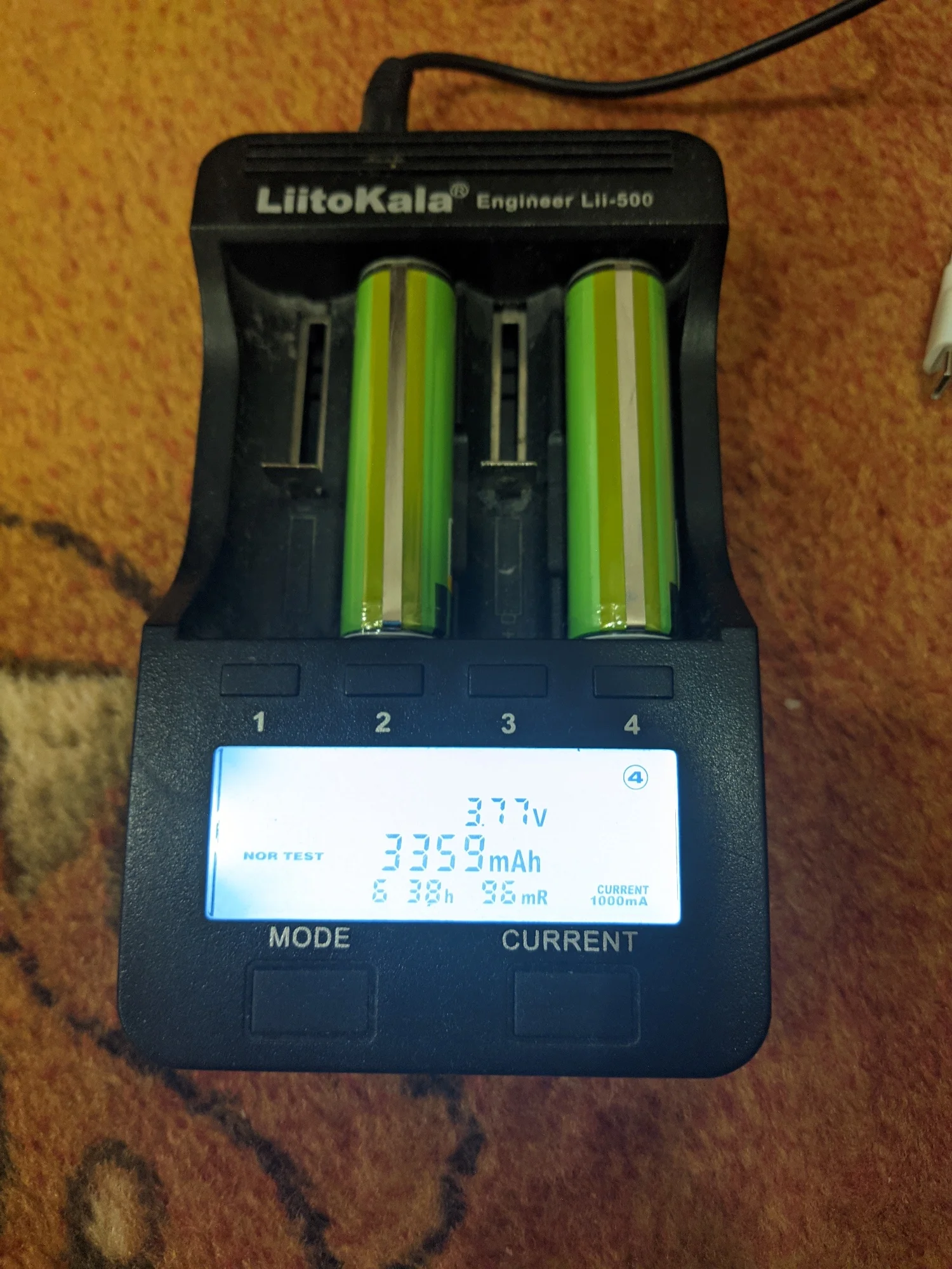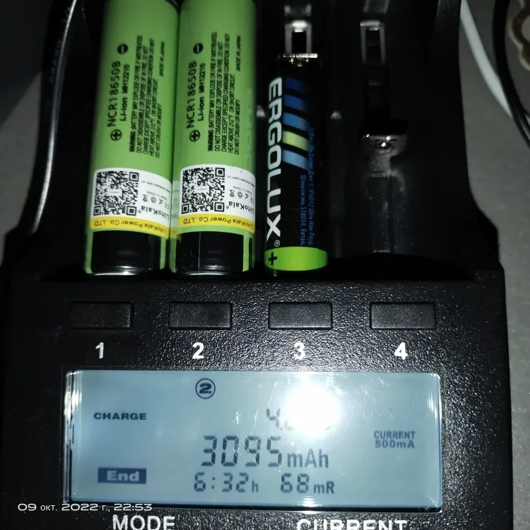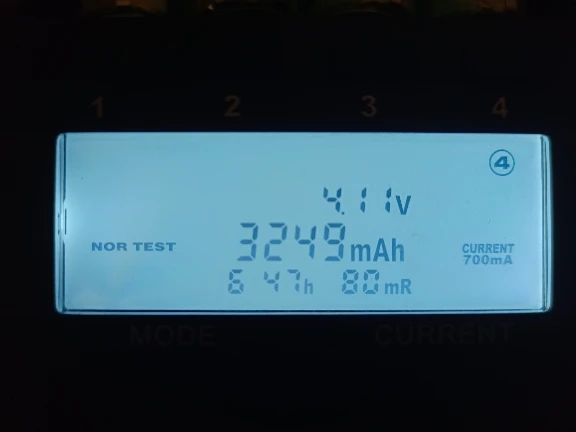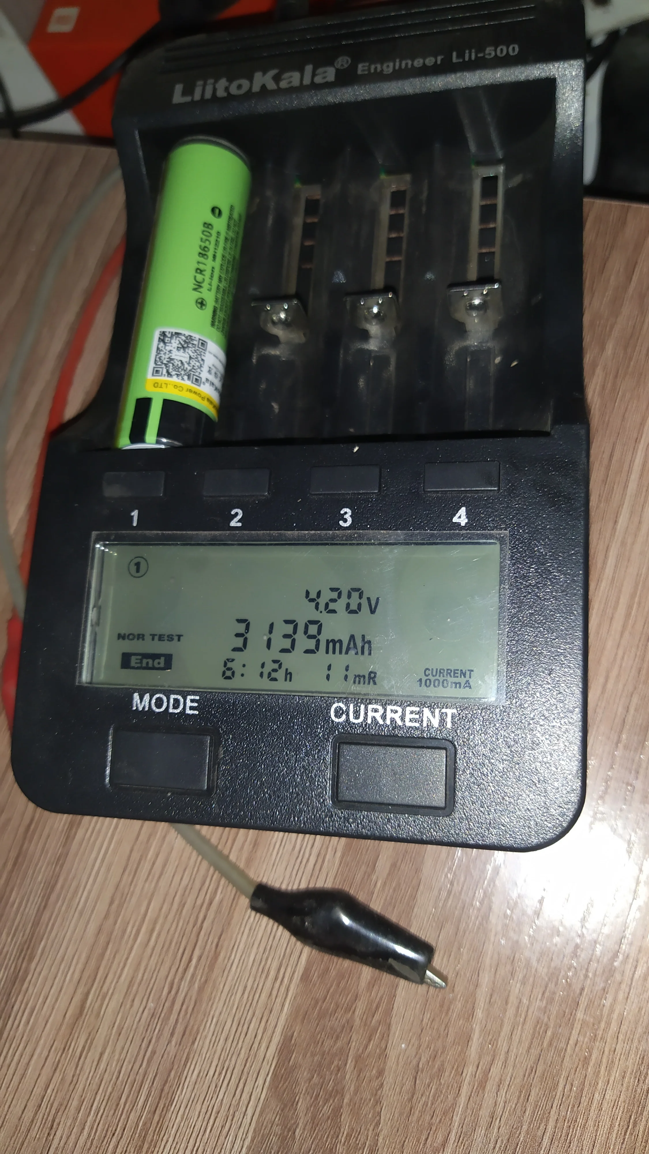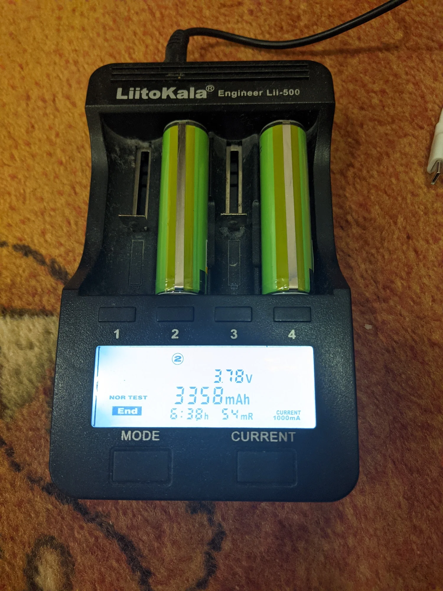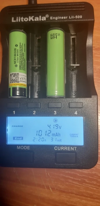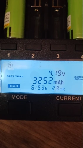 Чуть не дотягивает до 3200мАч - хотел написать, что не соответствует заявленной мощности, а на аккумуляторе то и нет ни одного параметра, вообще ни одного. По букво-цифрам NCR18650B и Li-Ion MH12210 бьётся вообще Panasonic. Возможно Litokala и взяла за основу их разработку. Судя по тому, как плавали параметры у Panasonic - 3100-3400мАч, всё, что в этих пределах - норма.