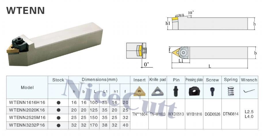 Держатель внешнего токарного инструмента Nicecutt WTENN CNC для TNMG1604, твердосплавная токарная пластина, токарный инструмент, режущий инструмент, бесплатная доставка