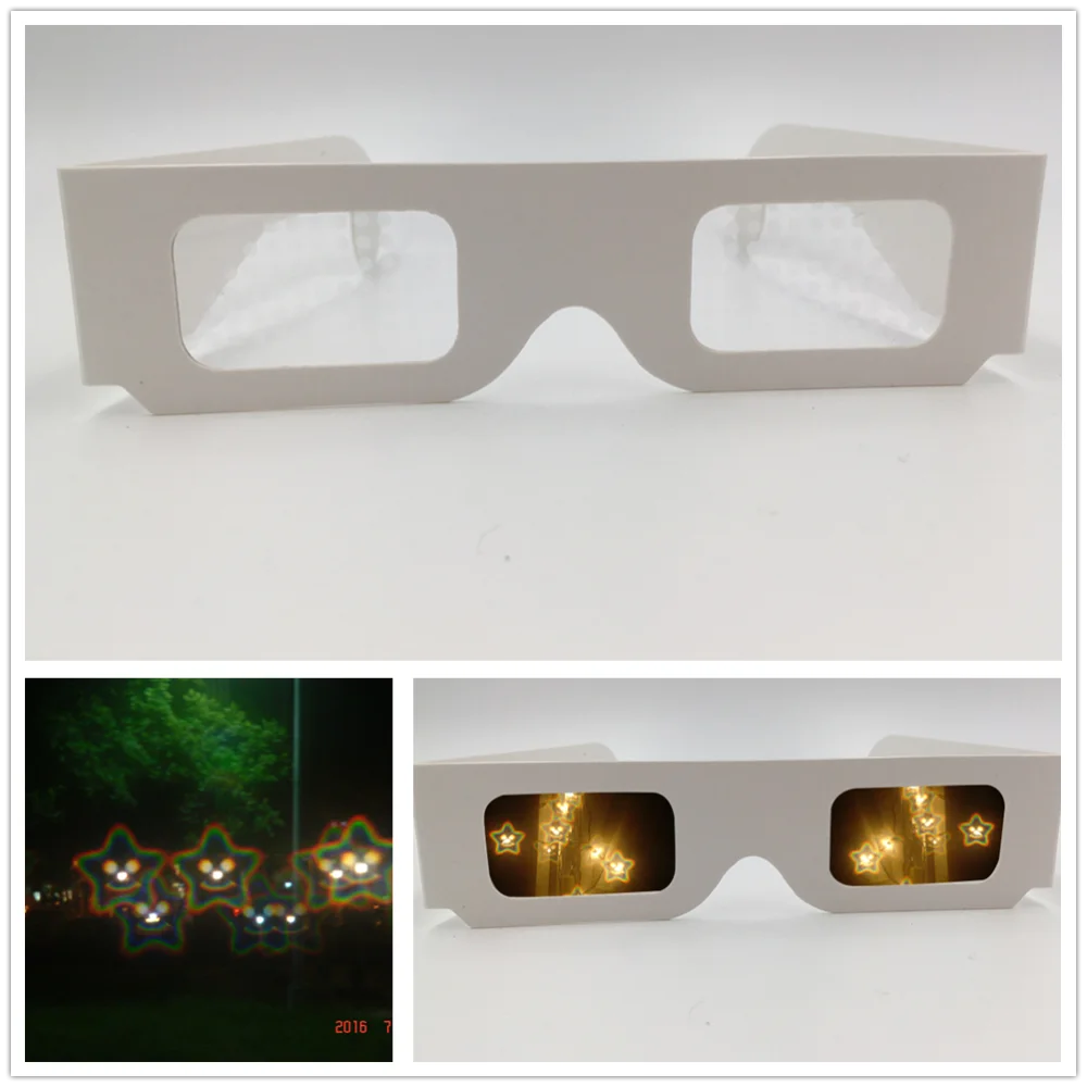 Сердце/звезда улыбки/длинная мутилгональная звезда/Рождественская елка/Снеговик/снежинка/Санта эффект бумаги картона дифракционные очки