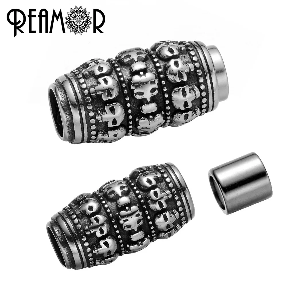 Пряжка REAMOR 8 мм из нержавеющей стали 316l с человеческим черепом, магнитная, шармы-соединители подходит для кожи браслет на магнитной застежке, ювелирных изделий